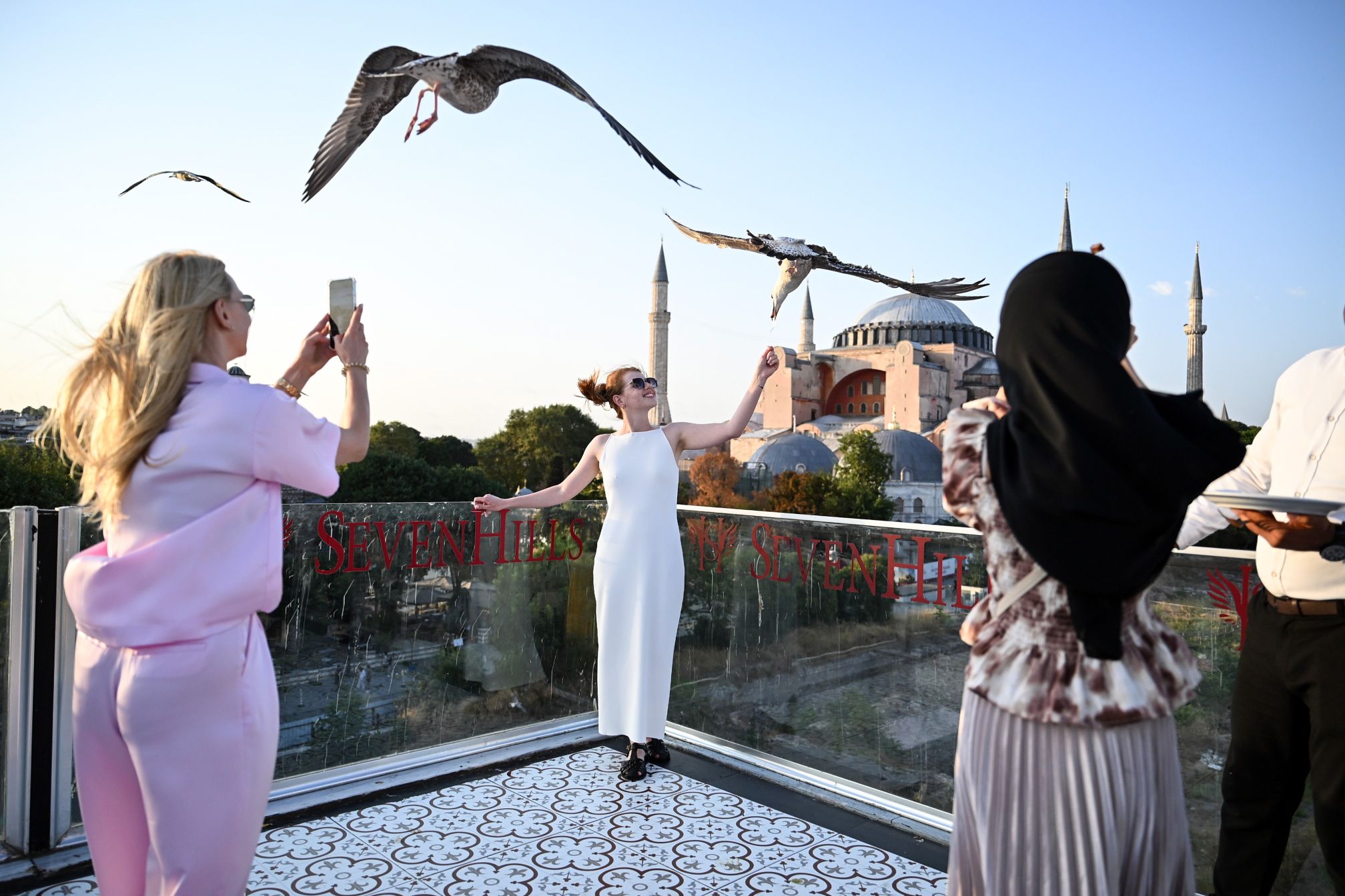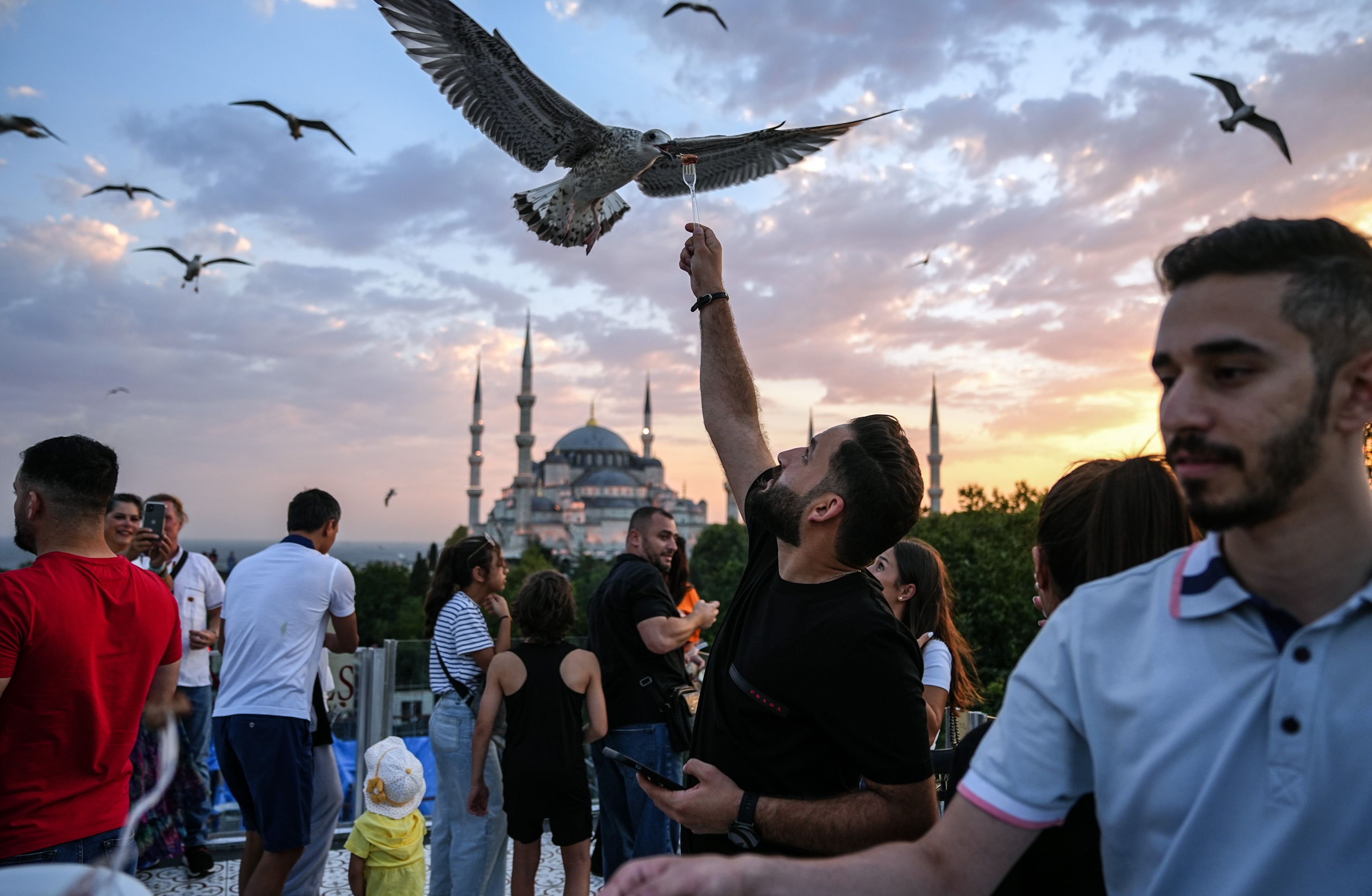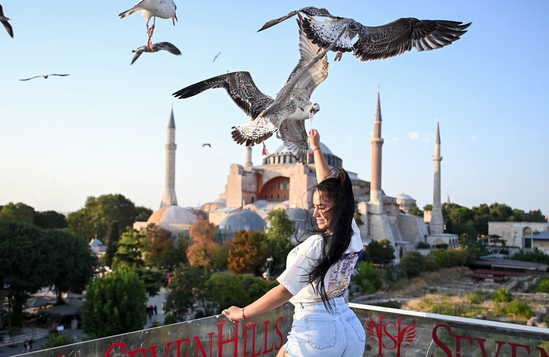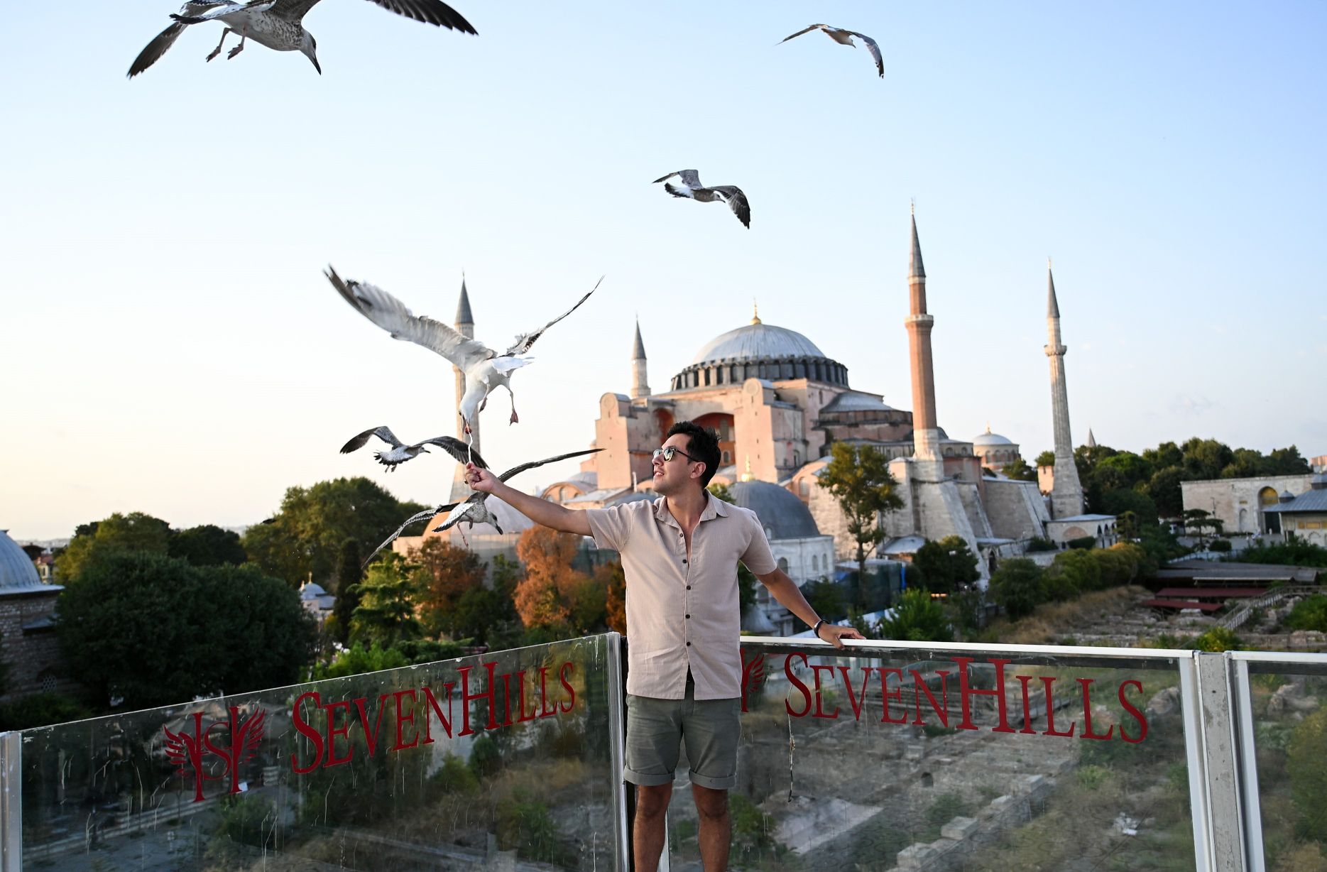 İstanbul'un simgelerinden Ayasofya Camii ve Sultanahmet Camii'nin manzarası eşliğinde artık yemeklerden martıları besleyen turistler, fotoğraf çekmek için binlerce kilometre yol katediyor. Dünyanın birçok ülkesinden binlerce kilometre yol katederek İstanbul'a gelen yabancı turistler, Ayasofya Camii ve Sultanahmet Camii manzarasında martıları besliyor. Turistler martıları besleyerek fotoğraf çekinmek için tatil rotalarını İstanbul'a çevirdi. Turistlerin uğrak tarihi mekanlarından olan Ayasofya ve Sultanahmet Camii'nde İstanbul manzarasında yer alan bir işletme günde yaklaşık 2 bin turisti ağırlıyor. Buraya gelen turistler yemek artıklarını restoranın terasında martılara veriyor. Turistlerin martıları besleyerek fotoğraf çektirmek için binlerce kilometre yol katettiği dikkat çekerken, restorana bir şey yiyip içmeden de misafirler ücretsiz bir şekilde gelebiliyor.