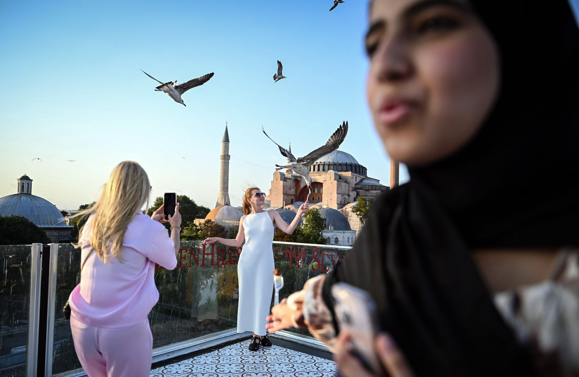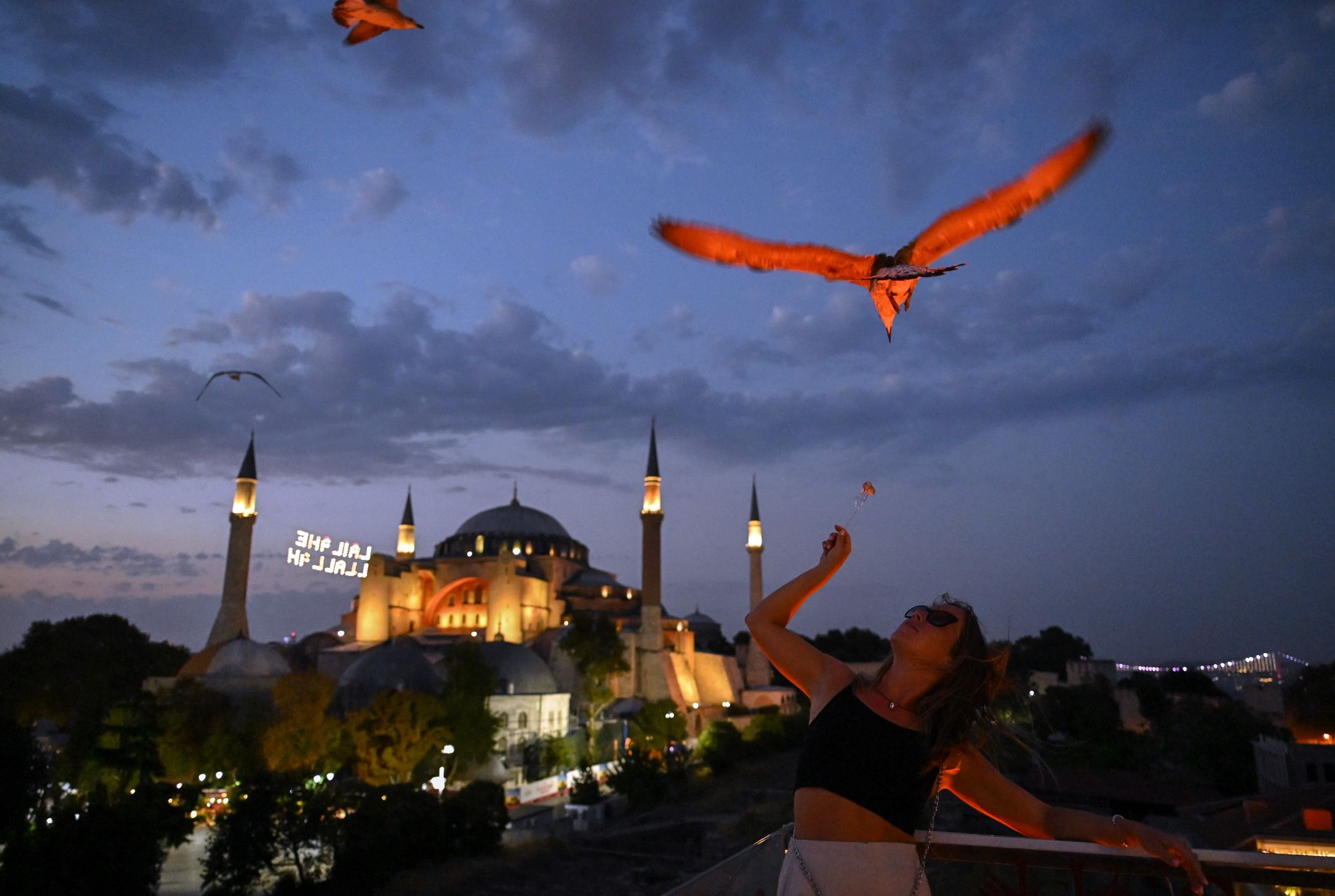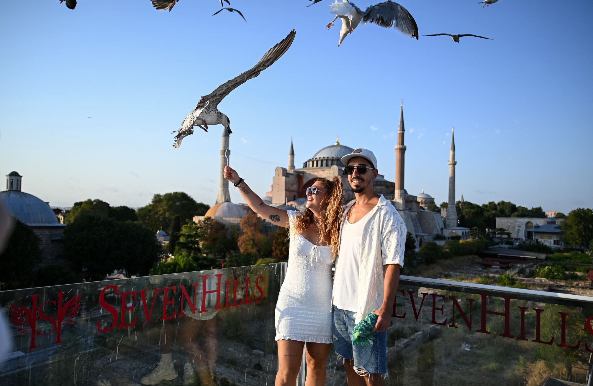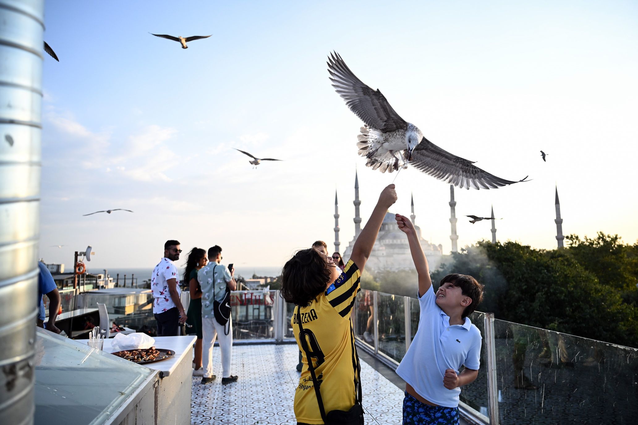 İstanbul'un simgelerinden Ayasofya Camii ve Sultanahmet Camii'nin manzarası eşliğinde artık yemeklerden martıları besleyen turistler, fotoğraf çekmek için binlerce kilometre yol katediyor. Dünyanın birçok ülkesinden binlerce kilometre yol katederek İstanbul'a gelen yabancı turistler, Ayasofya Camii ve Sultanahmet Camii manzarasında martıları besliyor. Turistler martıları besleyerek fotoğraf çekinmek için tatil rotalarını İstanbul'a çevirdi. Turistlerin uğrak tarihi mekanlarından olan Ayasofya ve Sultanahmet Camii'nde İstanbul manzarasında yer alan bir işletme günde yaklaşık 2 bin turisti ağırlıyor. Buraya gelen turistler yemek artıklarını restoranın terasında martılara veriyor. Turistlerin martıları besleyerek fotoğraf çektirmek için binlerce kilometre yol katettiği dikkat çekerken, restorana bir şey yiyip içmeden de misafirler ücretsiz bir şekilde gelebiliyor.