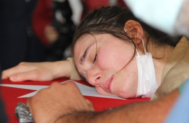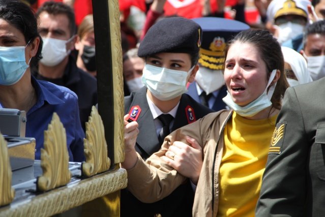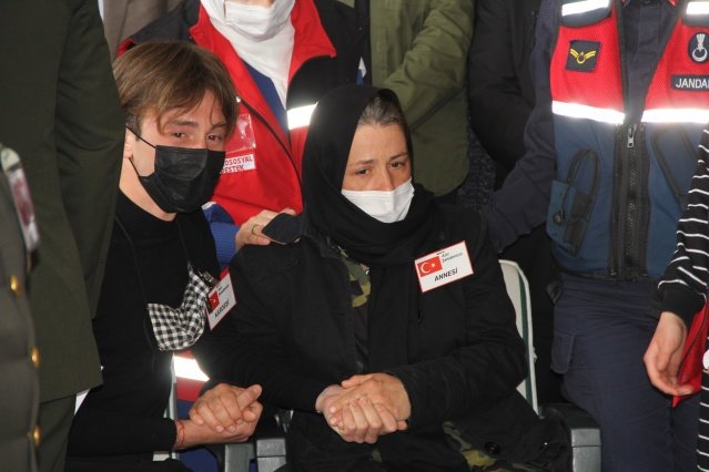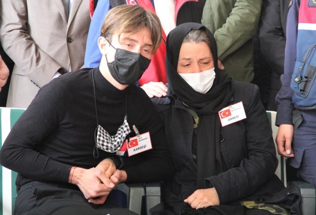Törende şehidin annesi Ayşe Canal ve kız kardeşi Merve Kıvık'ın ayakta durmakta güçlük çektiği görüldü. Duygu dolu anların yaşandığı törende ağabeyinin tabutuna sarılan Merve Kıvık, gözyaşlarına boğuldu.