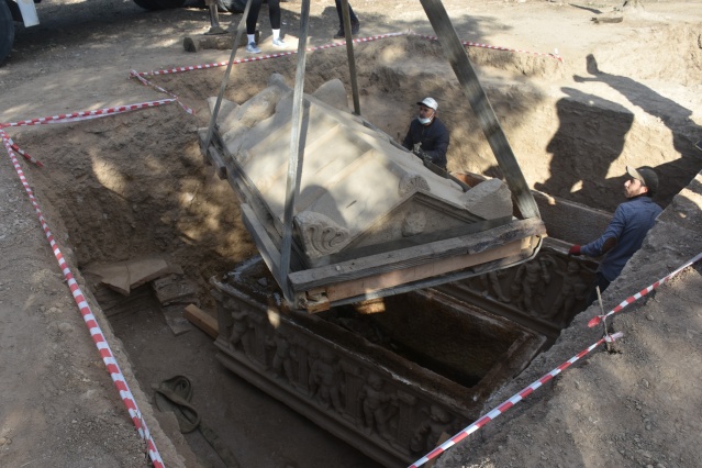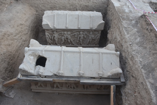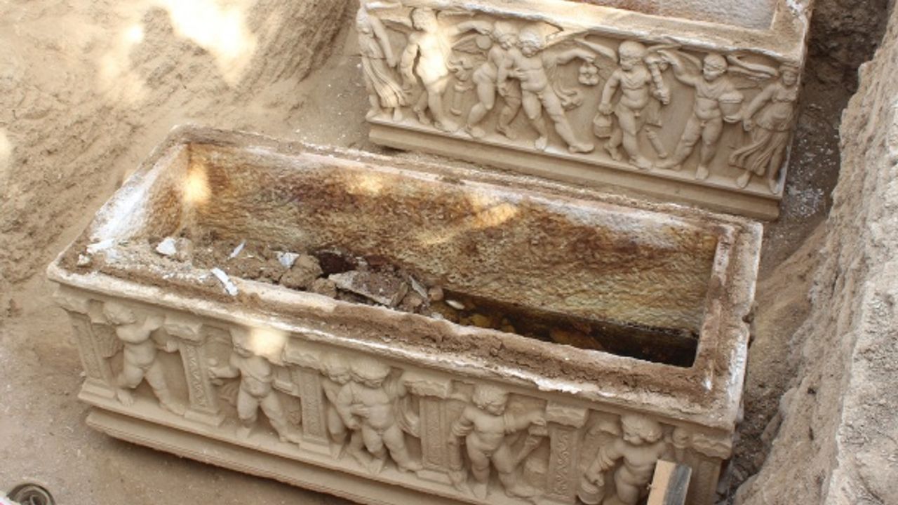 - Bazilikanın duvar kazısı sırasında ortaya çıkan eros figürlü 2 ayrı lahit içerisinde bulunan mumyalanmış cesetler müzeye kaldırıldı