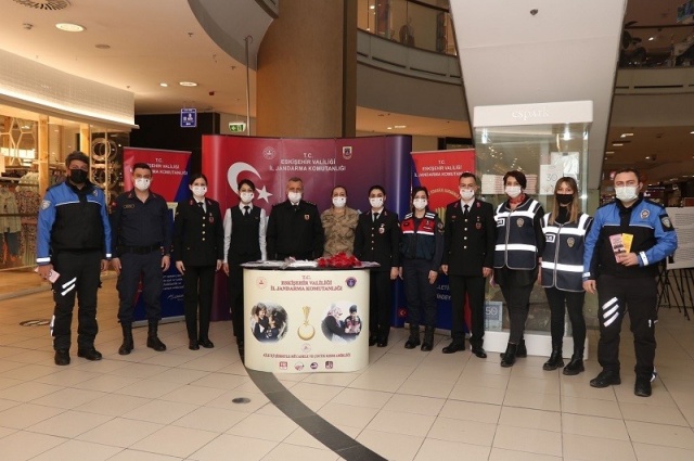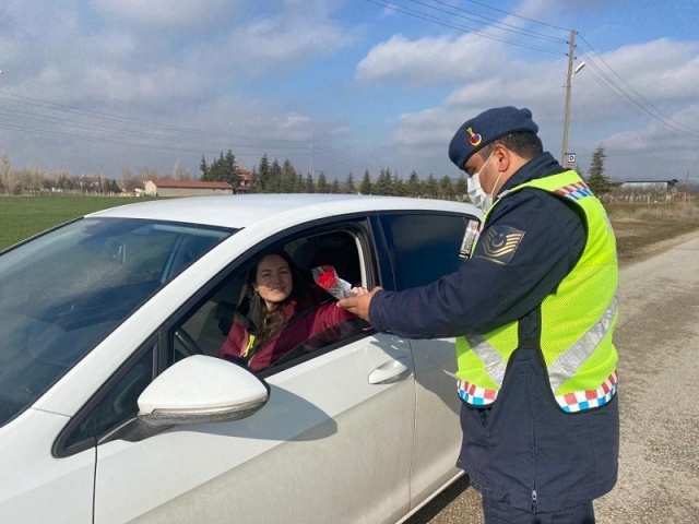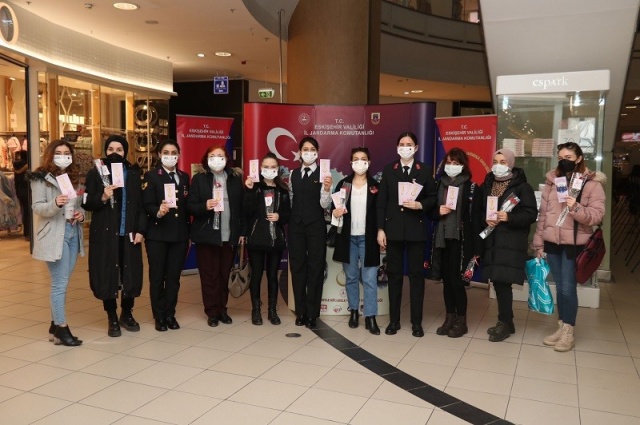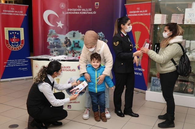 Eskişehir İl Jandarma Komutanlığı ekiplerince '8 Mart Dünya Kadınlar Günü' kapsamında, şehit ve gazi aileleri ziyaret edilerek şehit anneleri ve eşlerine karanfil hediye edildi. Aile İçi Şiddetle Mücadele ve Çocuk Kısım Amirliği ekipleri ise Espark Alışveriş Merkezi içerisinde açtıkları stand ile başta KADES uygulamasının tanıtımı olmak üzere, kadına yönelik şiddet ile ilgili çeşitli broşürler dağıtılarak bilgilendirme yaptı. Trafik ekiplerince uygulama noktalarında ise özellikle kadın sürücülere ve kadın yolculara karanfil verilerek “8 Mart Dünya Kadınlar Günü” kutlandı.