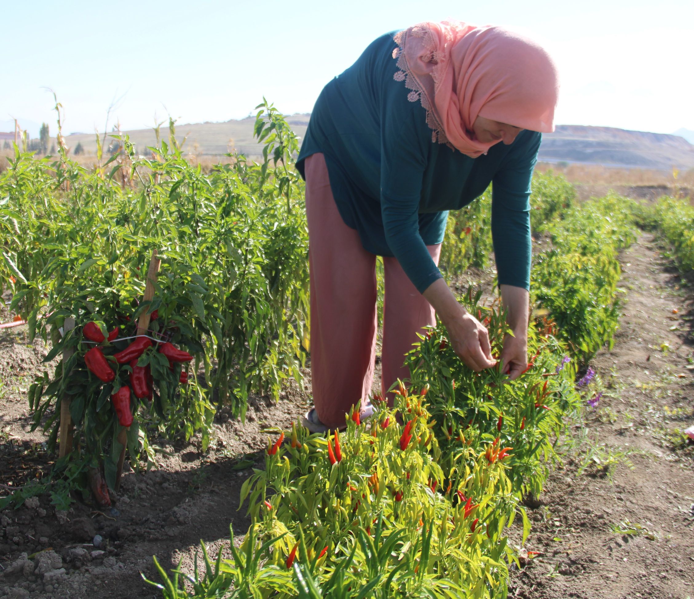 Kocasinan Hanımeli Kooperatifi'nde yer alan 12 kadın, 25 hektar alanda domates, biber, patlıcan, kabak salatalık, çilek gibi ürünler yetiştirerek hem vatandaşa organik ürünler sunuyor hem de aile bütçelerine katkıda bulunuyor. Asıl amaçlarının kadınların ekonomik özgürlüğünü sağlamak olduğunu kaydeden Kocasinan Hanımeli Kooperatif Başkanı Büşra Minaz, bundan sonraki hedeflerinin ise bir kahvaltı salonu açarak ürettikleri organik ürünleri vatandaşa sunmak istediklerini söyledi. Minaz, "Başkanımız Ahmet Çolakbayrakdar'ın bize sunduğu imkanlarla kadın dayanışmasıyla çalışıyoruz. 12 kadın, 25 hektar alanda çalışıyoruz. Domates, biber, patlıcan, kabak, salatalık, çilek gibi doğal ürünler yetiştirmeye çalışıyoruz. Tarladan direkt mutfağa sunuyoruz. İşlediğimiz ürünler de var. Cırgalan biberini işleyip toz haline getiriyoruz. Domateslerimizi menemen yaparak soslara çeviriyoruz. Kabak, patlıcan kurularımız var. Bunlar gibi çeşitli ürünlerimiz var. Şu anki en büyük hedefimiz buraya bir kahvaltı salonu açmak. Onun için de valimiz ve başkanımızın desteklerini bekliyoruz. Burada yetiştirdiğimiz doğal ürünleri kahvaltı salonunda halka sunmak istiyoruz. Burada hem üretiyoruz, hem aile bütçemize katkı sağlıyoruz. Buradaki asıl amacımız kadınlara ekonomik özgürlük sağlamak ve kadın istihdamını sağlamak. Aile bütçemize de katkı sağlıyoruz" dedi.