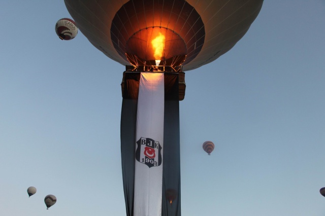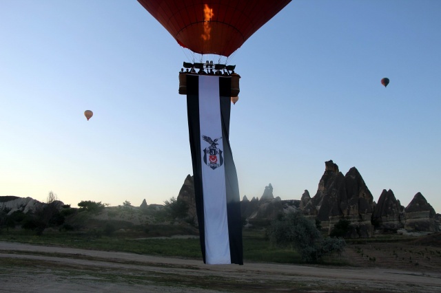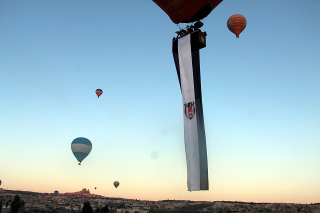 Beşiktaş'ın Süper Ligi şampiyon olarak tamamlamasının ardından Kapadokya'da sıcak hava balonları bu sabah Beşiktaş bayrakları ile havalandı.