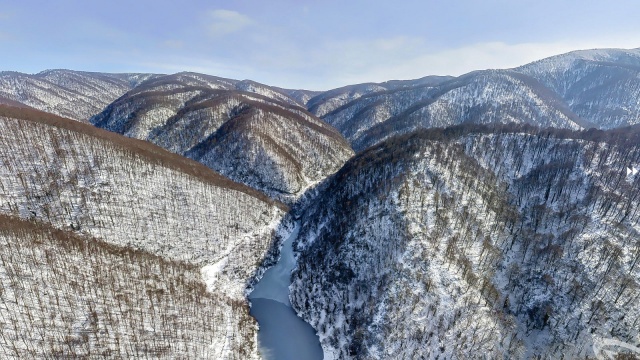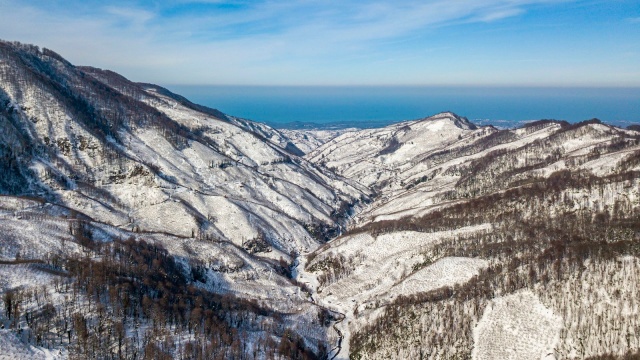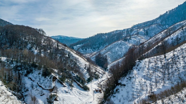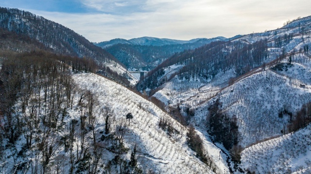 En yüksek zirvesi bin 160 metreyi bulan Kaplandede Dağları’nda ağaçların karlı manzarası, görsel şölen oluşturdu. Kaplandede dağlarının karla kaplı manzarası ve dağın eteklerinde olan Sarıyayla Baraj Göleti, drone ile havadan da görüntülendi.