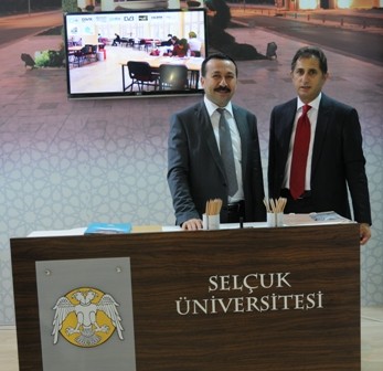 Konexpo etkinlikleri Konya Selçuk Üniversitesi Rektörü Prof. Dr. Hakkı Gökbel ve Ekovitrin Yönetim Kurulu Üyesi Bilal Koçak.