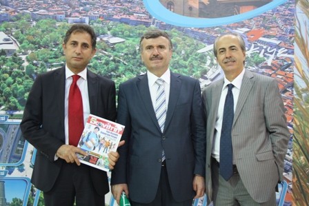Konexpo ‘da Konya Büyükşehir Belediye’sinin standında Başkan Tahir Akyürek, Kamuran Abacıoğlu, Bilal Koçak ile birlikte.