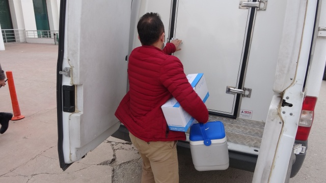 Çin'den Türkiye'ye getirilen korona virüs aşısı, Sağlık Bakanlığına ait özel tasarlanmış iklimlendirme özellikli nakil araçları ile sağlık kuruluşlarına dağıtılıyor. Uçakla geçtiğimiz günlerde Adıyaman’a getirilen aşılar, eksi 20 ile artı 20 derece sıcaklığı ayarlanabilen özel donanımlı araç tarafından aşı yapılacak sağlık kuruluşlarına ulaştırılıyor.