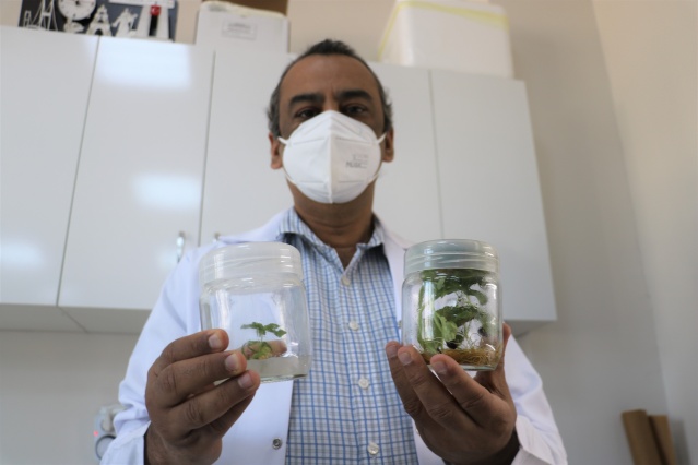 Prof. Dr. Muhammad Asım ise, “Şu anda biz iki farklı alan üzerinde çalışıyoruz hem laboratuvar koşullarında hem de tarla şartlarında denemelere devam ediyoruz. Önceden bahsettiğimiz gibi bitki biyoteknolojisi ile biz bu çalışmaları laboratuvar şartlarında yapay ortam üzerinde bir kuraklık oluşturarak denemelere devam ediyoruz. Bu şekilde ki çalışmalara en kısa zamanda bir optimizasyon yapıp orada ki çeşitleri seçip daha sonra ki aşamalarda toprak ve tarla şartlarında devam edeceğiz. Mevcut duruma göre biz 4 ya da 5 sene içersin de bu bölgeye ve ülkemize ait kuraklığa dayanıklı bitkiler temin etmeyi düşünüyoruz’’ dedi.