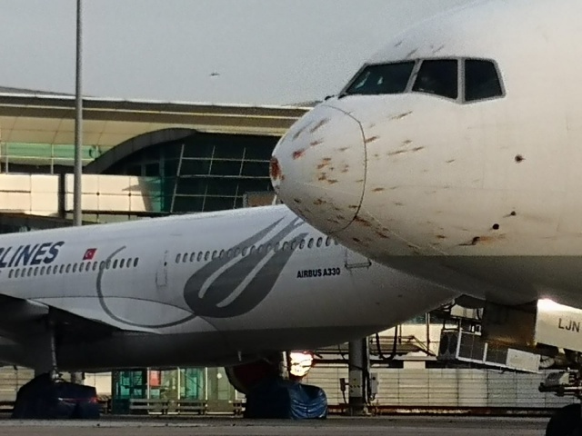 Turkısh Cargo’nun İstanbul-Almatı seferini gerçekleştiren TK6220 sefer sayılı Boeing 777-F tipi kargo uçağı kalkıştan kısa süre sonra kuş sürüsüne girdi. Burun kısmında meydan gelen hasar nedeniyle uçak, Atatürk Havalimanı’na geri döndü.