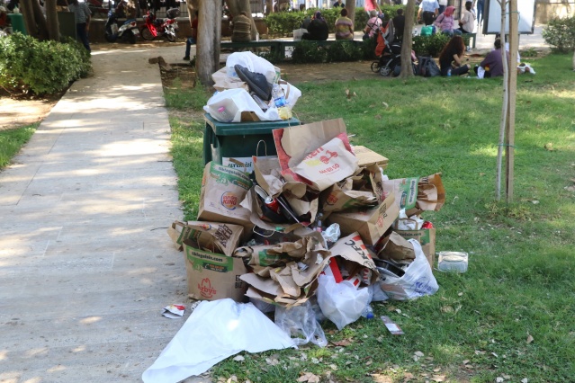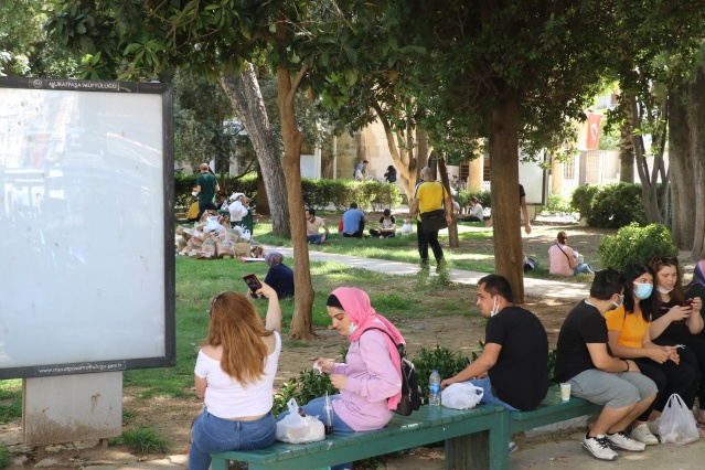 Tam kapanma sonrası kendilerini sokağa atan vatandaşlar, sosyal mesafe ve maske kurallarını ihlal etti. Yeme içme yerlerinde oturma izni olmadığı için gel al servisi ile yiyeceklerini alanlar, Murat Paşa Camii bahçesini adeta mesire alanına çevirdi. Camii bahçesinde oluşan kalabalık, korona virüse davetiye çıkartırken oluşan yiyecek artıkları çöplüklerden taştı.