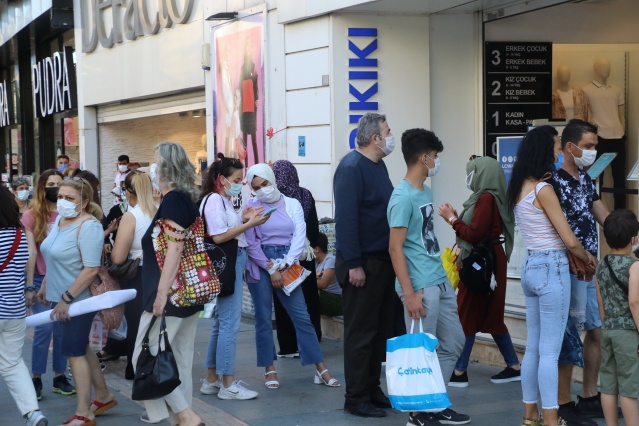 Öte yandan kentin işlek caddelerinden kapalı yolda da oluşan kalabalık, 17 günlük tam kapanmada alınan önlemleri hiçe saydı. Bazı mağazaların önünde metrelerce kuyruk oluştu. Sosyal mesafe kuralının da yok sayıldığı caddede bazı vatandaşların da maskesiz dolaştığı görüldü.