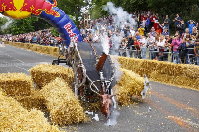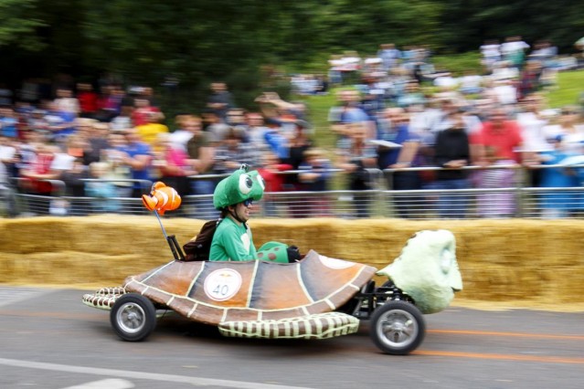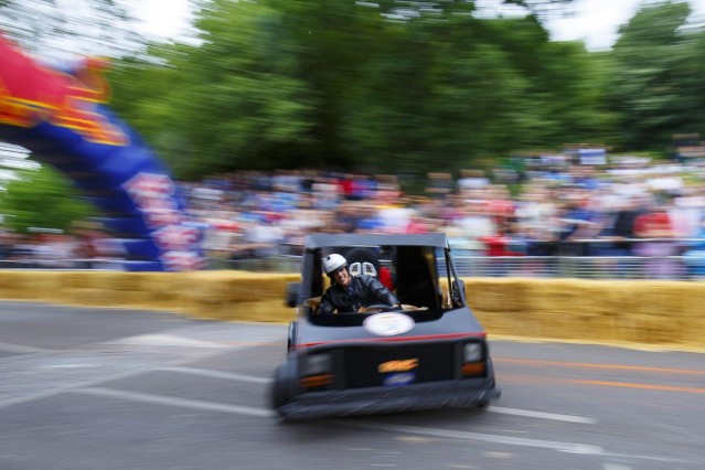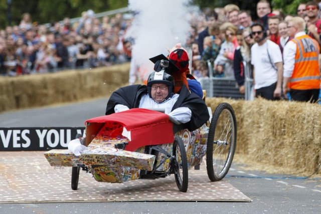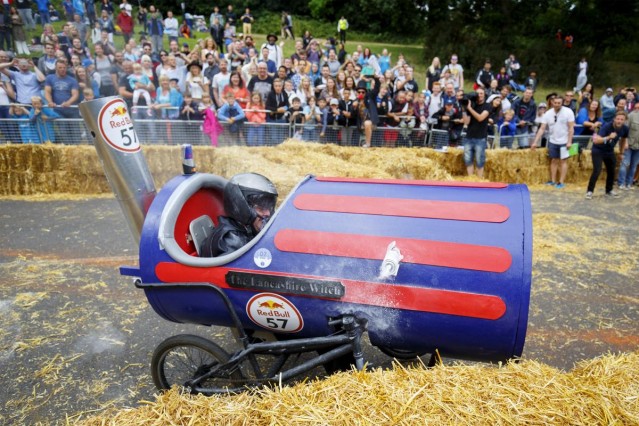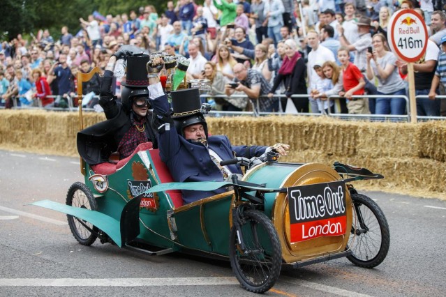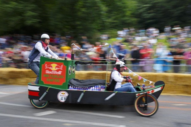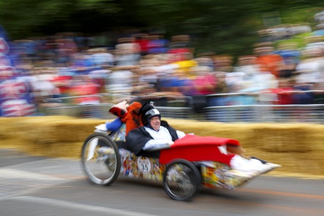 Londra'da amatör sürücülerin kendi yaptıkları araçlarla katıldığı Red Bull Soapbox yarışı bu yıl da renkli görüntülere sahne oldu.