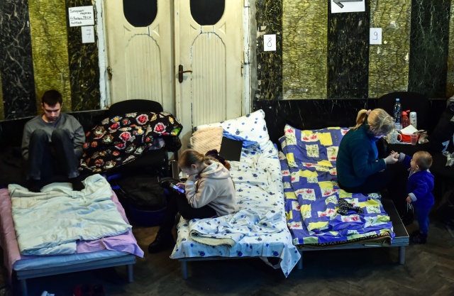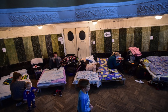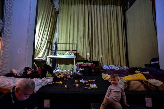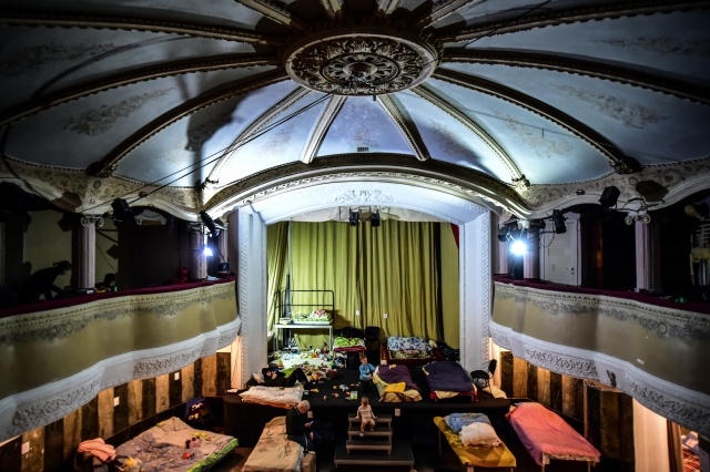 Ukrayna'nın Lviv kentinde birçok ünlü oyunun sergilendiği Les Kurbas Tiyatrosu, savaştan kaçan Ukraynalı siviller için sığınma merkezi oldu.