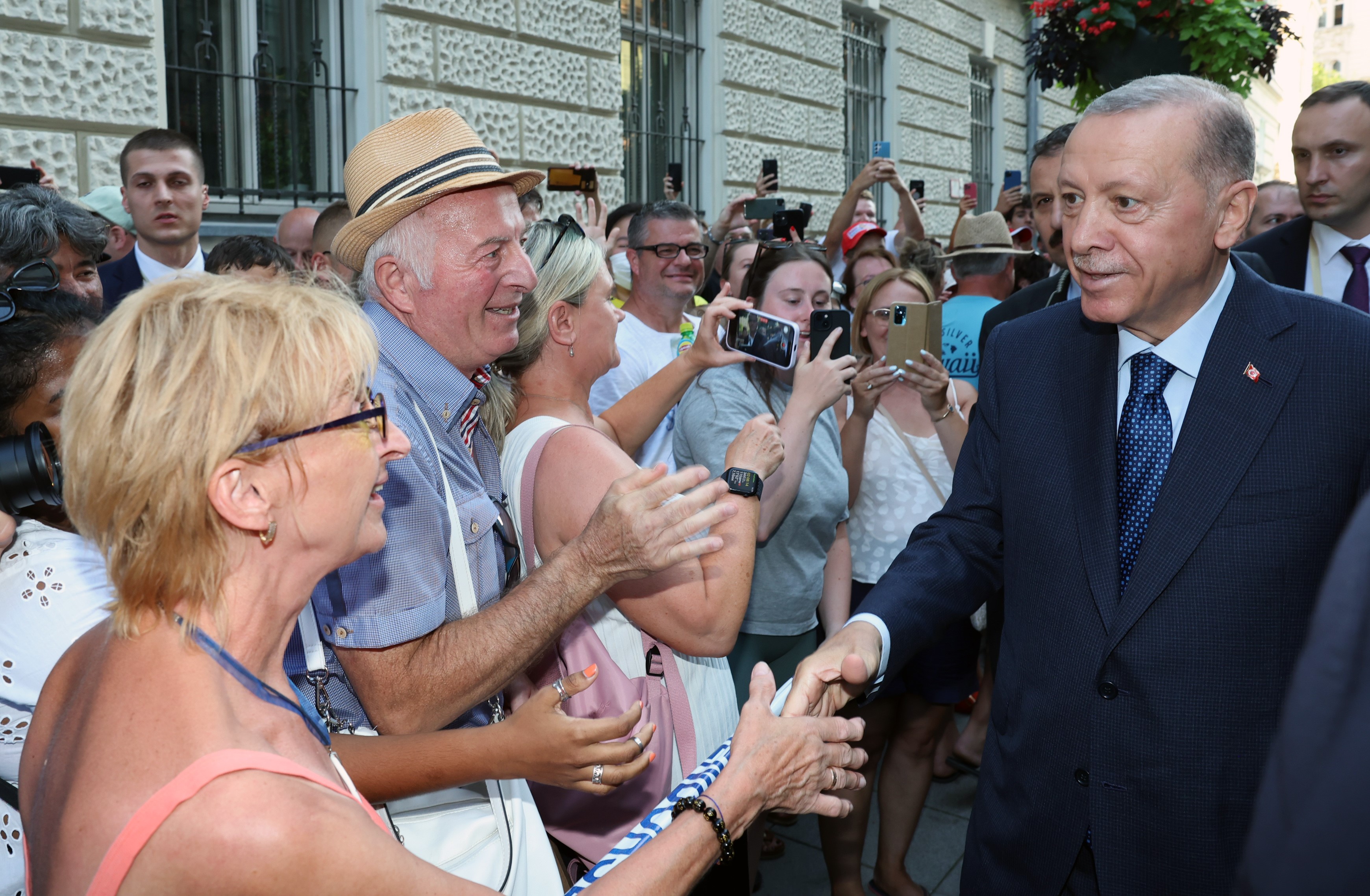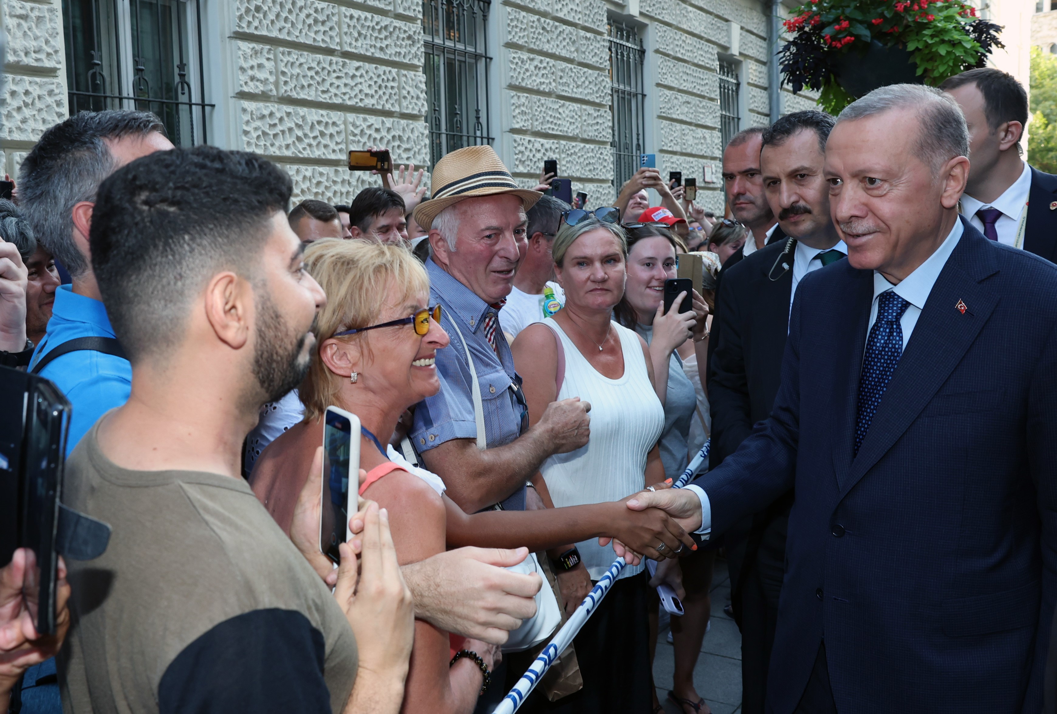 Macaristan vatandaşları, Macaristan’ın Kuruluş Günü kutlamaları dolayısıyla Budapeşte'de bulunan Cumhurbaşkanı Recep Tayyip Erdoğan’a sevgi gösterisinde bulundu. Cumhurbaşkanı Erdoğan, kendisine sevgi gösterisinde bulunan Macaristan vatandaşlarını selamladı.