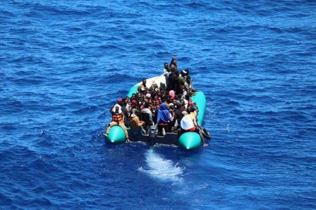 Libya açıklarında batmak üzere olan şişme bottaki 97 düzensiz göçmen, bölgede görev yapan Deniz Kuvvetleri Komutanlığına ait TCG Gaziantep'in girişimi ve Libya Sahil Güvenliğinin müdahalesiyle kurtarıldı.