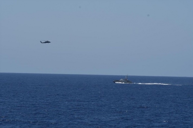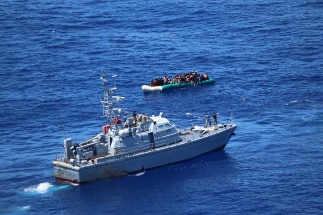 Libya Sahil Güvenlik Komutanlığına durumun bildirilmesinin ardından askeri helikopter ve TCG Gaziantep fırkateyni düzensiz göçmenleri taşıyan lastik botu yakından takip ederek emniyete aldı.