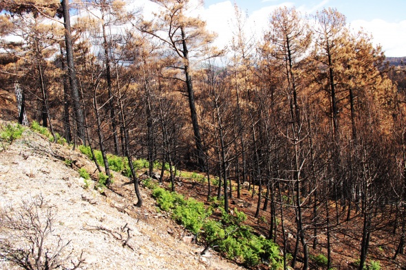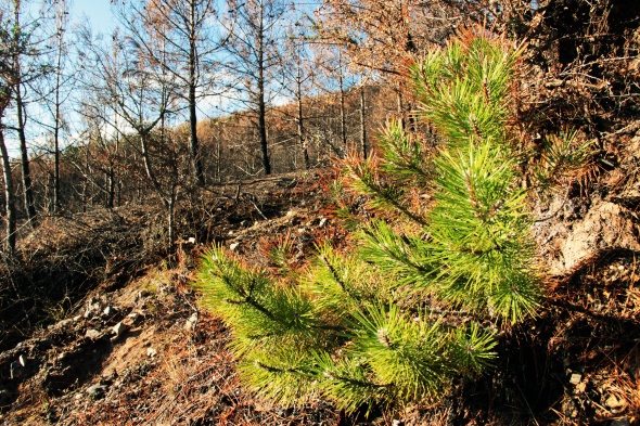 Yağmur sonrası yanan sahaların bazı bölümlerinde yeşil örtü tekrar filizlenmeye başladı. Yanan sahalarda Menengeç, Meşe, Erguvan, Karaçalı, Kapari, Dişbudak ve Kocayemiş gibi ağaç ve bitki fidanları yükselmeye başladı. İlk yağmurların ardından yeşil doku tekrar kendini gösterirken, bir taraftan da yanan sahalarda hem temizlik, hem de kesim çalışmaları yürütülüyor.