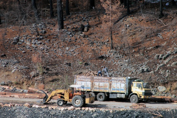 Orman yangınları sonrası yanan sahalarda Türkiye'nin dört bir yanından kesim işçileri yanan sahalarda temizlik ve kesim çalışması başlattı. Yangınların üzerinden geçen 2 ay sonra toprağın yağmurla ilk buluşması sonrası tabiat ana yeşil yüzünü gösterdi.