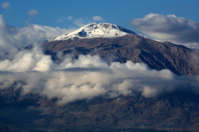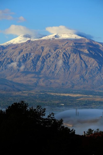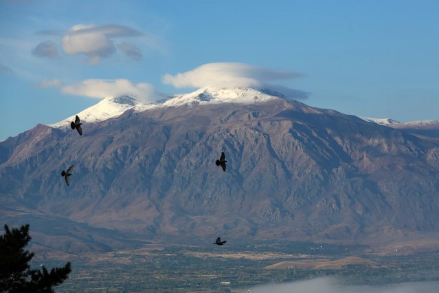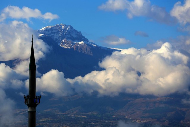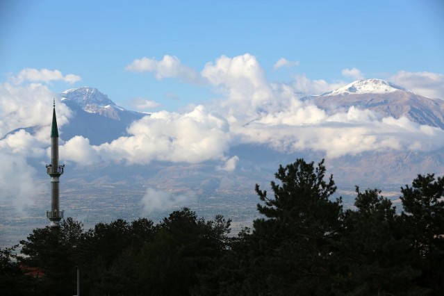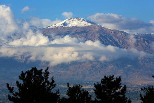 Erzincan’ın Tunceli sınırında yer alan 3 bin 463 metre yüksekliğindeki Munzur Dağı zirvesi yağan karla beyaza büründü.