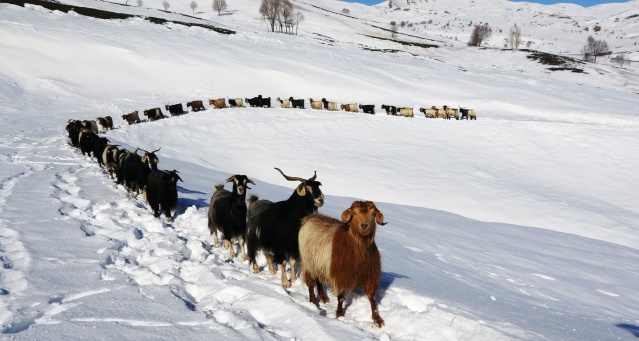 4 saatlik yolu yürüyen besicilerden Eyüp Omur, “Hayvanlarımızı yayladan getirdik. Yaylada otumuz, samanımız bitti. Karlı dağları aştık. Patika yoldan karı çiğneye çiğneye zorla köye ulaştık. 1500 rakımdan, 1800 rakıma kadar tırmanarak çıktık. Dedelerimizden atalarımızdan kalan mesleği sürdüreceğiz. Bizim görevimiz hayvancılıktır. Burada kar çok yağıyor. Hayvanlarımızı günde iki defa kar üzerinde besliyoruz” dedi.
