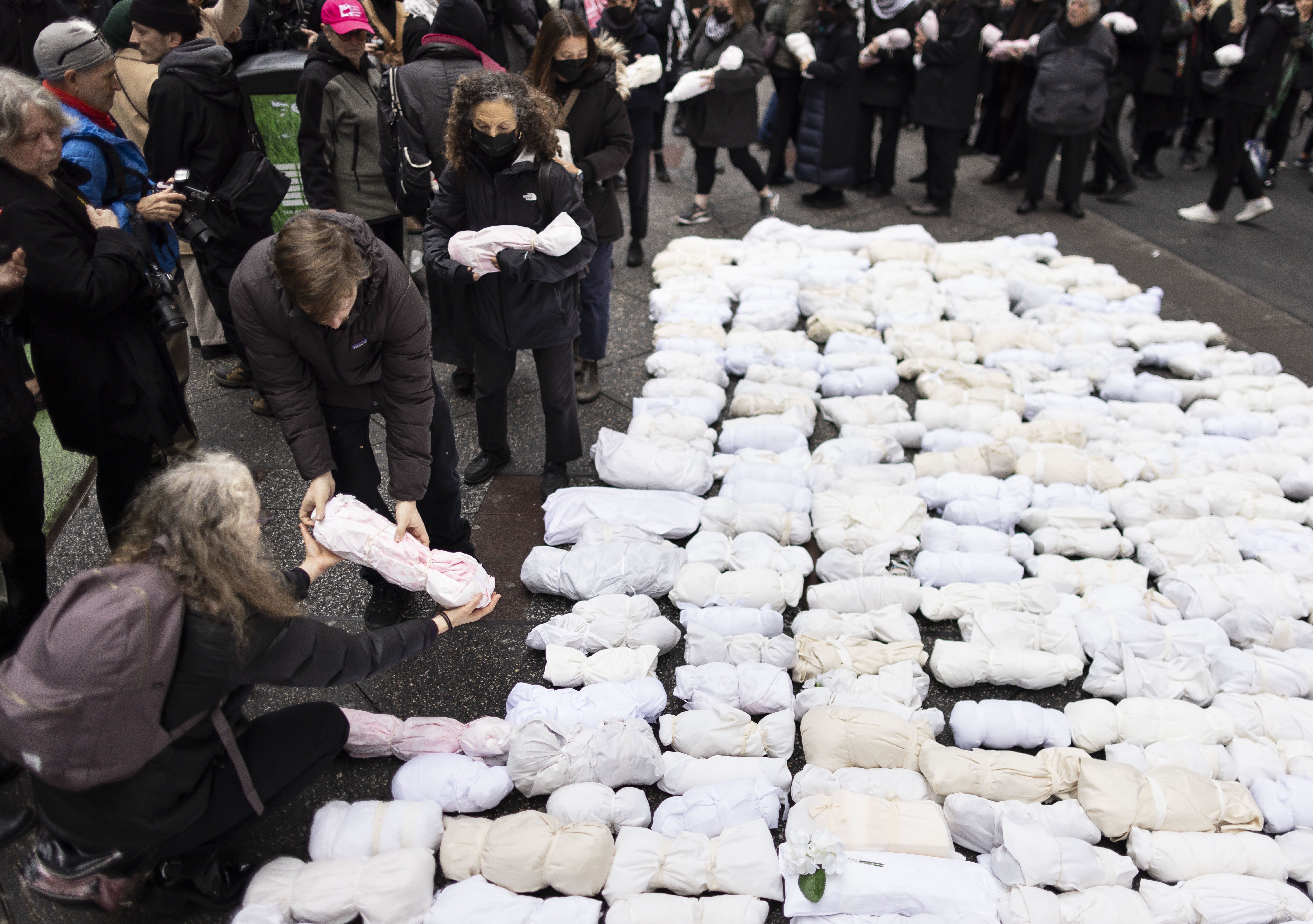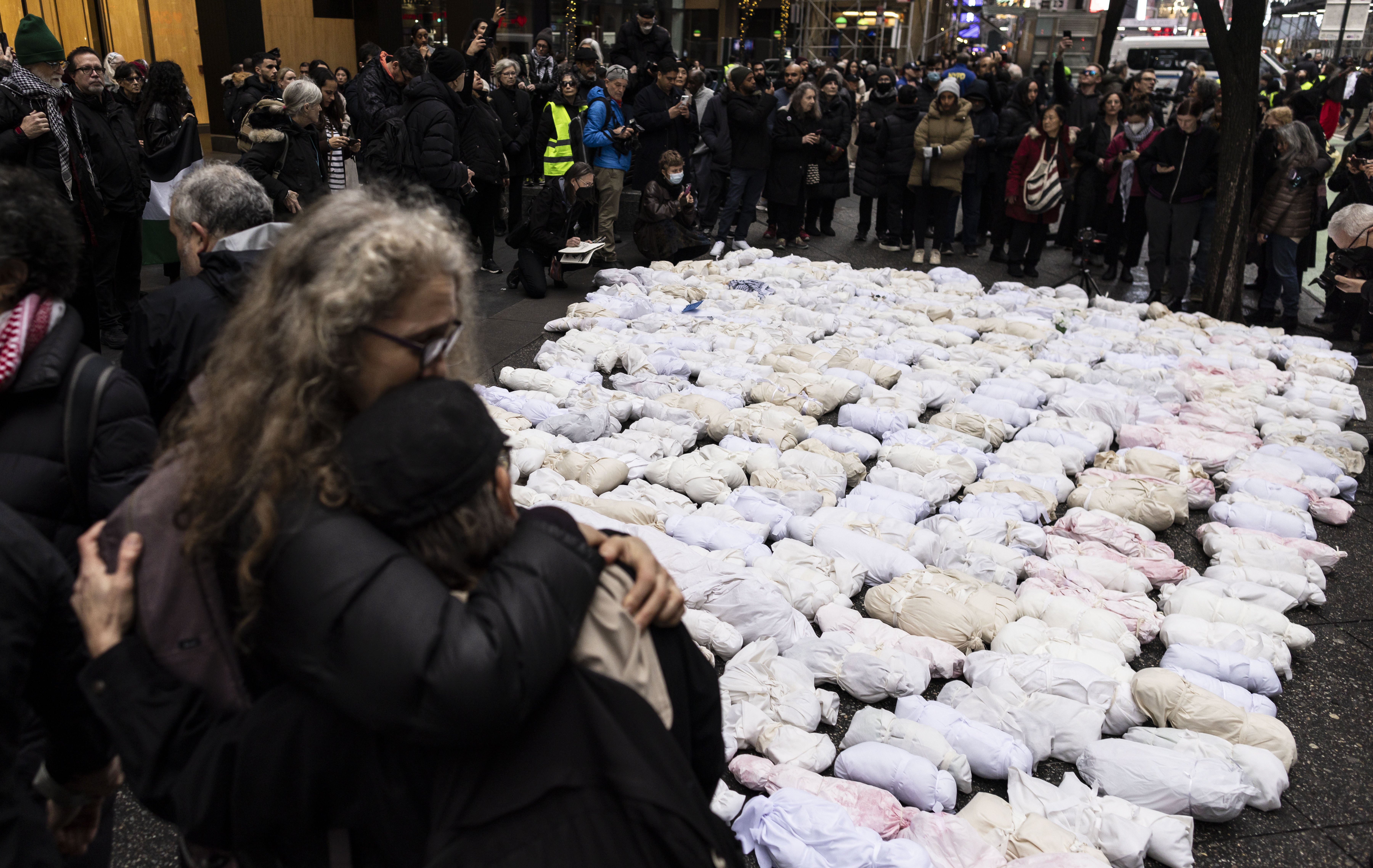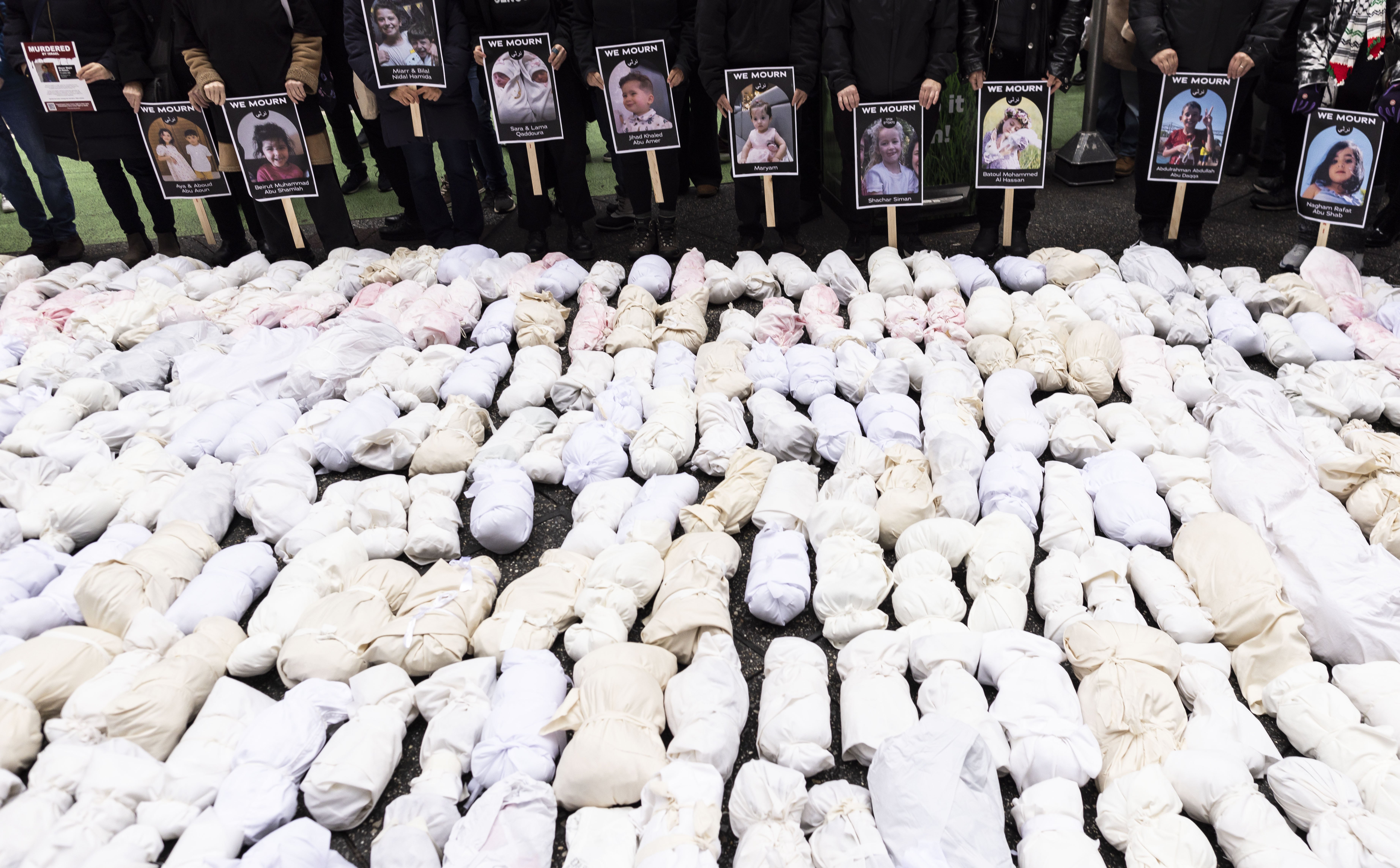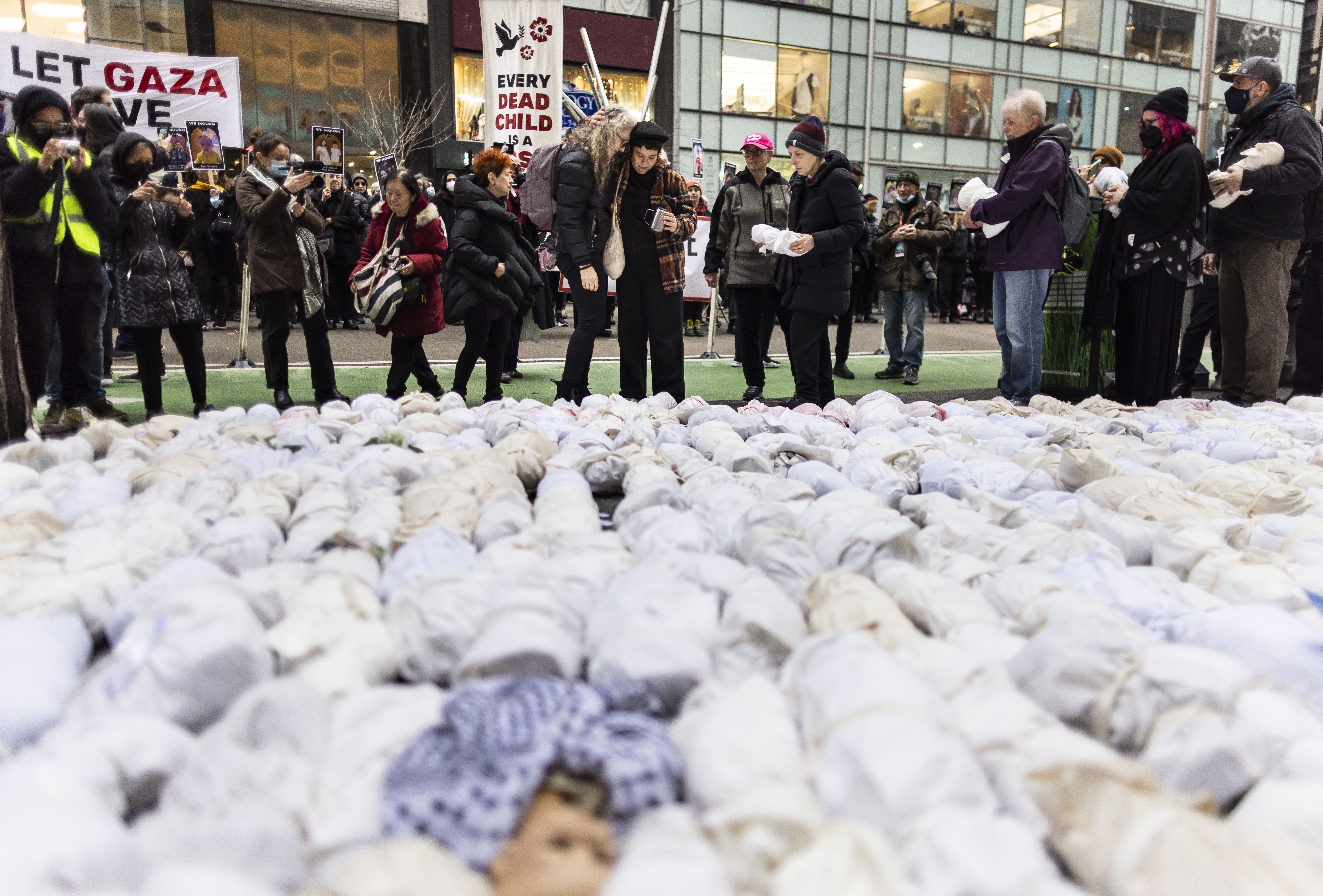 İsrail’in havadan, karadan ve denizden abluka alarak Gazze Şeridi’ne gerçekleştirdiği saldırılara dünya kamuoyunun tepkisi sürüyor. ABD’nin New York kentinde yüzlerce kişi, İsrail'in Gazze Şeridi'ne yönelik devam eden ağır bombardımanına tepki göstermek için sokaklara döküldü. Manhattan bölgesindeki Bryant Parkı'nda toplanan göstericiler, ellerinde İsrail’in saldırılarında ölen Gazzeli çocukları temsil eden kefene sarılı maketlerle ünlü Times Meydanı'na doğru yürüdü. Gazze’de derhal ateşkes ilan edilmesi çağrısında bulunan göstericiler, kefene sarılı 500 bebek maketini caddeye bıraktı.