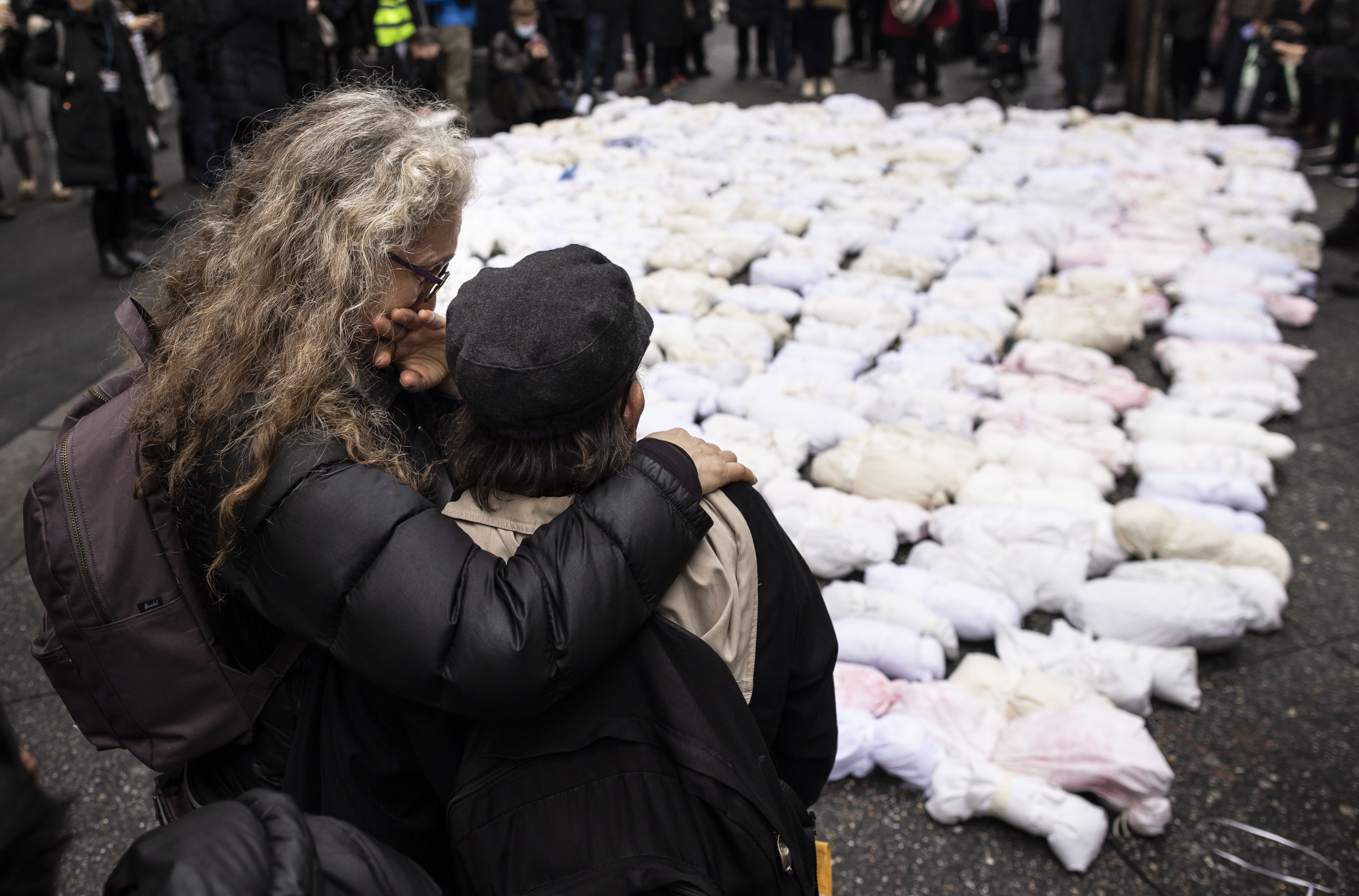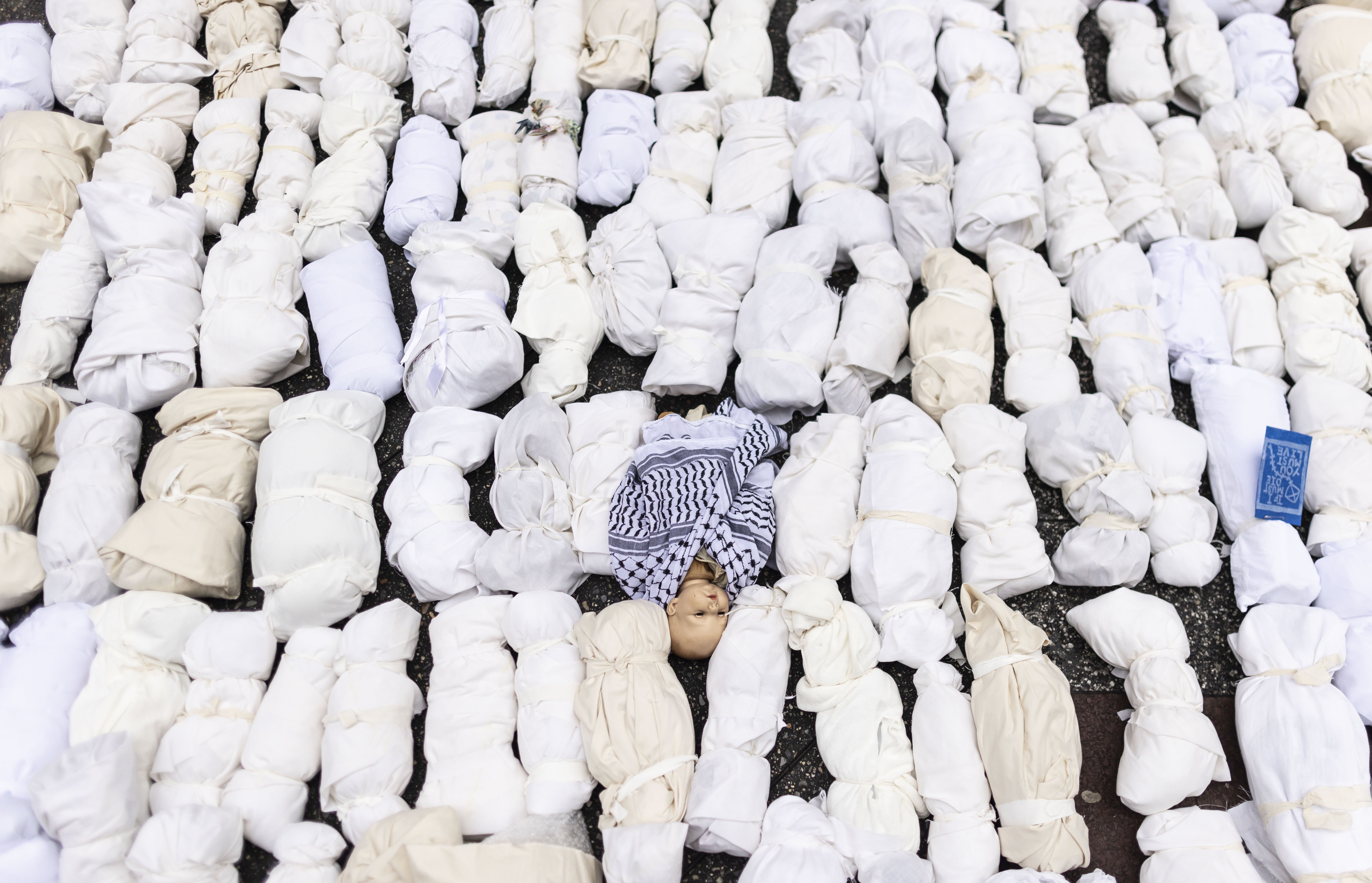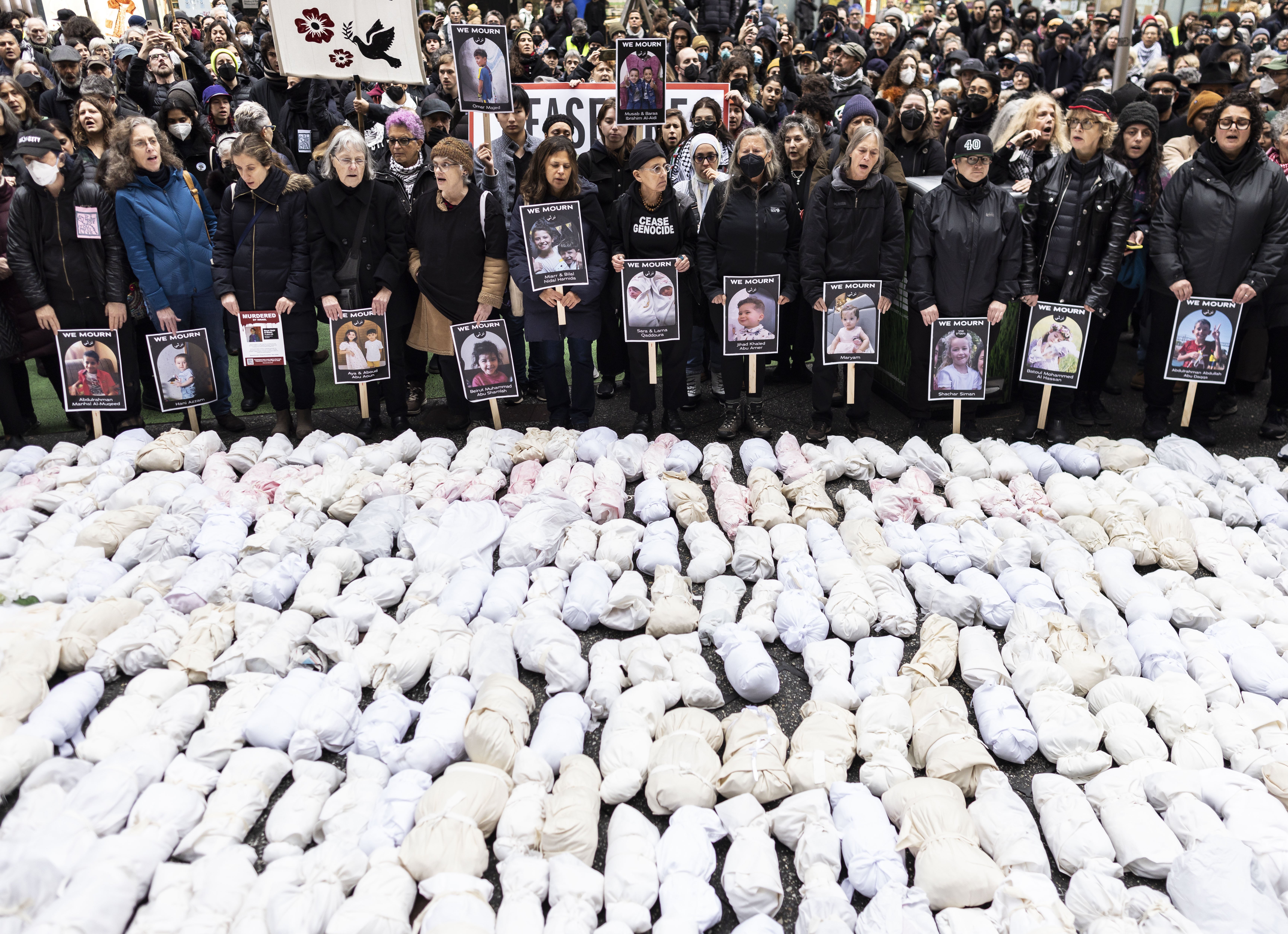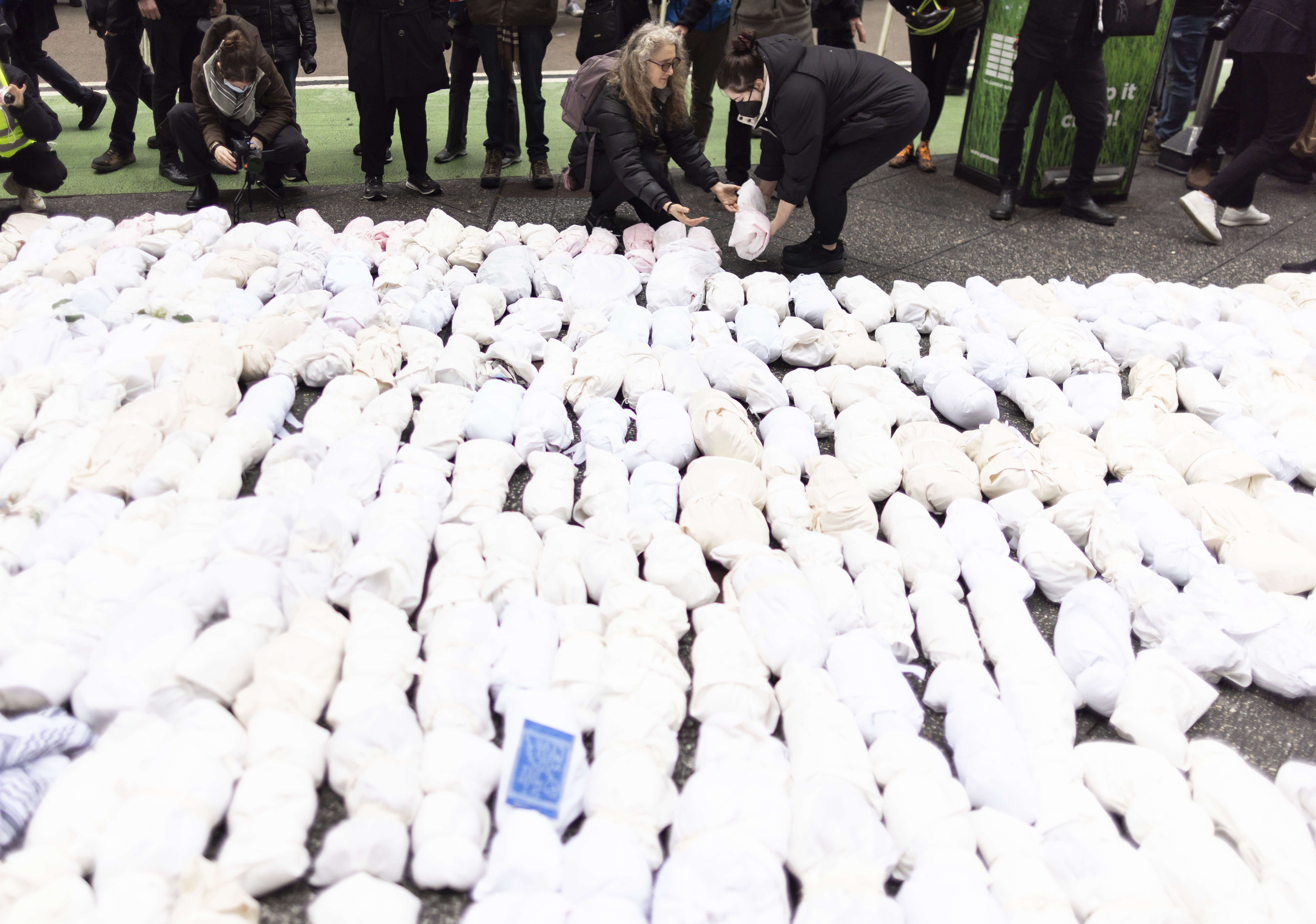 İsrail’in havadan, karadan ve denizden abluka alarak Gazze Şeridi’ne gerçekleştirdiği saldırılara dünya kamuoyunun tepkisi sürüyor. ABD’nin New York kentinde yüzlerce kişi, İsrail'in Gazze Şeridi'ne yönelik devam eden ağır bombardımanına tepki göstermek için sokaklara döküldü. Manhattan bölgesindeki Bryant Parkı'nda toplanan göstericiler, ellerinde İsrail’in saldırılarında ölen Gazzeli çocukları temsil eden kefene sarılı maketlerle ünlü Times Meydanı'na doğru yürüdü. Gazze’de derhal ateşkes ilan edilmesi çağrısında bulunan göstericiler, kefene sarılı 500 bebek maketini caddeye bıraktı.