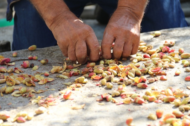 Komşusunun yemesi için verdiği kavrulmamış Antep fıstıklarını toprağa diken Üzeyir Güven, filizlendiğinde şaşırdığını dile getirdi. İlk senelerde Antep fıstığı ağacından verim alamadığını ve aşılama sayesinde fıstıkların çıktığını anlatan Güven, “Ben daha önce burada beyaz zambak yetiştiriyordum. Beyaz zambakları ekerken Şanlıurfa’dan komşumuz emekli Mehmet bey gelirken bana bir tas kavrulmamış taze Antep fıstığı getirmiş. Ben de çatlak olanları yedim. Çatlamamış olanları toprağa diktim. Tesadüf olarak çıktı ve Antep fıstığı oldu. Ondan sonra 5 sene geçti ve baktım Antep fıstığı fazla vermiyor. Şanlıurfa’dan bir öğretmen düğüne gelmişti buraya. Bana dedi ki “bunları aşı yapmadan olmaz”. Babasına telefon etti ve Şanlıurfa’dan çelik getirdi. Getirdiği çelikleri 3 sene önce aşı yaptık. Öğretmenin babası bana “3 sene sonra fıstık verir” dedi. Ama benimkiler daha ilk senesinde çıkmaya başladı. Bu sene 3’üncü senesi. Antep fıstığı bir sene çok çıkıyormuş diğer sene daha az. Bu senede az çıkan dönemdeymiş ama ona rağmen yine de Antep fıstığı var” diye konuştu.