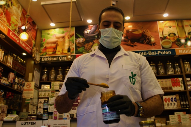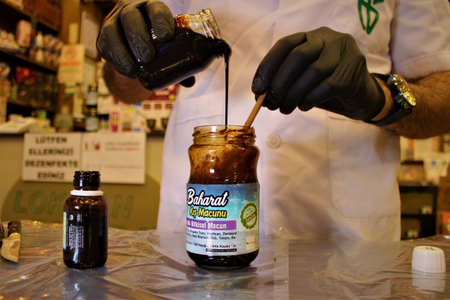 Tüm dünyayı etkisi altına alan korona virüs salgınının hızla yayılması ve Marmara Bölgesi’nin soğuk havaların etkisi altına girmesiyle birlikte, bağışıklık sistemini güçlendirmek isteyen vatandaşlar, aktarlara olan ilgiyi arttırdı. Bir çok faydalı ürünün karışımından oluşan kış macununun satışları ise adeta patladı. İçerisinde saf bal, andız pekmezi, taze toz zencefil, toz zerdeçal, zahter, keten tohumu, toz tarçın, çörekotu tozu, saf salep, arı sütü ve damla sakızı gibi doğal ürünleri barındıran şifa deposu kış macunu, aktarlar tarafından özel olarak hazırlanıyor. 450 gramlık kavanozların içerisinde 250 liraya satılan kış macunu, fiyatının yüksek olmasına rağmen bağışıklığı güçlendirdiği için vatandaşlardan yoğun bir talep görüyor. Aktarlar ise, çoğu zaman bu taleplere yetişebilmekte güçlük çekiyor.