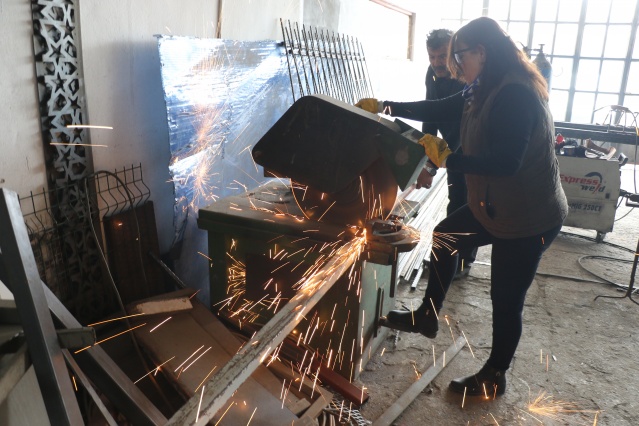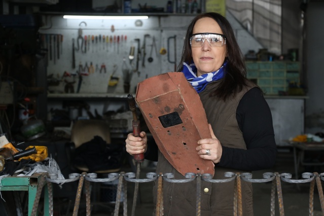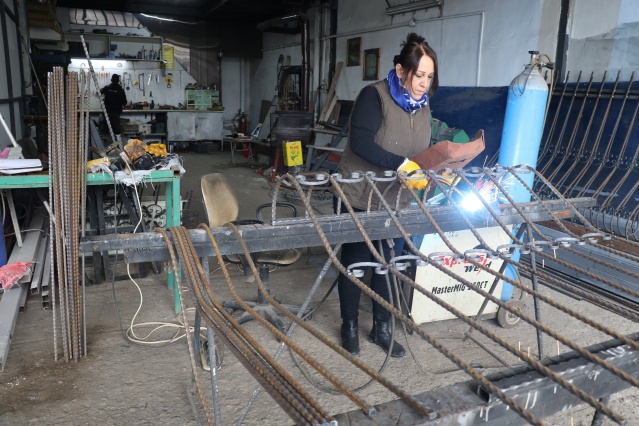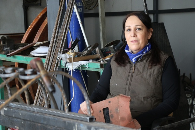 Edirne’de, 30 yıl önce eşine çay kahve yapmak için girdiği demir atölyesinde yıllar içerisinde meslekte ustalaşan Azize Küp, profil kesiyor, kaynak işliyor, taşlama yapıyor