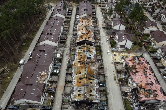 Rus güçlerinin Ukrayna’nın Kiev yakınlarında bulunan Gostomel kentinden çekilmesinin ardından bölgede meydana gelen yıkım görüntülendi.