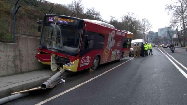 Yokuştan inerken frenleri tutmayan 42K hat numaralı otobüs, kaldırımdaki aydınlatma direğine çarparak durabildi. Otobüs şoförü, kazayı yaralı olarak atlattı.