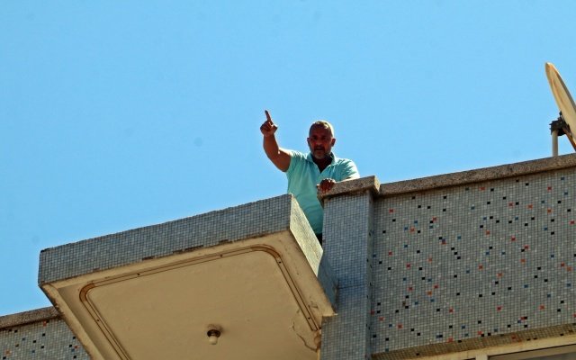 Antalya’da, Kayseri’deki kızının yanına gitmek için seyahat izni çıkarmaya ikametinin olmadığı kaymakamlığa gelen adam, belgeyi alamayınca kaymakamlığın karşısındaki apartmanın çatısına çıkarak herkese ağzına geleni saydırdı. Polisin ikna etmesiyle çatıdan indirilen adam, iznin verileceğini öğrenince ise sevgi nakaratları sıraladı.