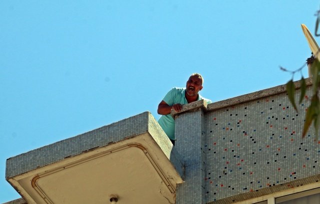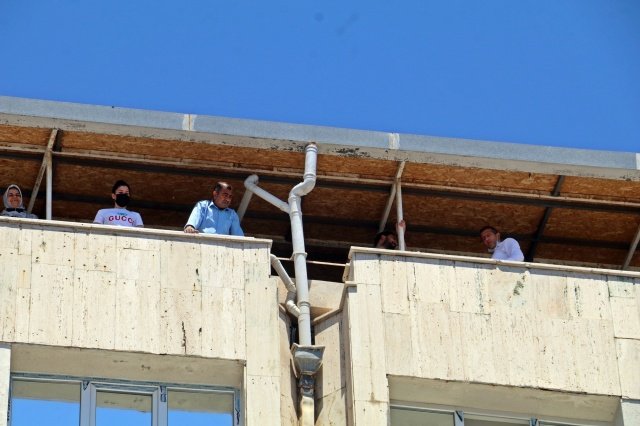 Bunun üzerine sinirlenen Mustafa İ., kaymakamlık binasının karşısındaki 5 katlı bir apartmanın çatısına çıkarak intihar teşebbüsünde bulundu. Çatıda herkese ağzına geleni saydıran Mustafa İ., kendisini görüntüleyen gazetecilere de, “Çek iyi çek. Bir tek şey istedim. Çocuğumun yanına gitmek. İyi çek, herkesten şikayetiyim. Kimse benimle ilgilenmedi. Beni rezil ettiniz. Sadece çocuğum için izin istedim” diye haykırdı.