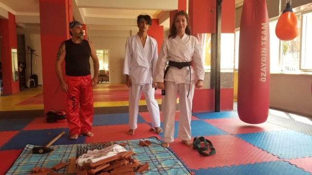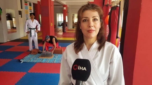 Manisa’da yaşayan İranlı karate antrenörü Reihaneh Rotivand Ghiyasvand, kadın-erkek eşitliğine dikkat çekmek için sırtını çivili tablaya dayayıp karnında balyozla 10 kiremit kırdırdı. Ghiyasvand, cesaret isteyen gösterinin aslında bir teknik gerektirdiğini söyledi.