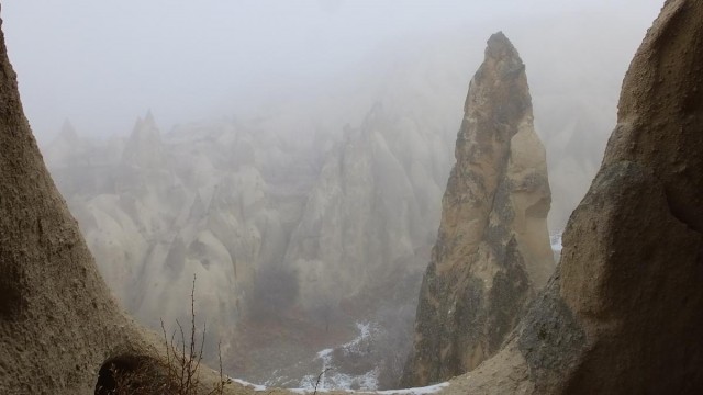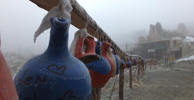 Peribacaları, kayadan oyma evleri ve kiliseleriyle yerli ve yabancı turistlerin ilgisini çeken Kapadokya'da, sabah saatlerinde etkili olan sis nedeniyle, görüş mesafesi yer yer 30 metreye kadar düştü.