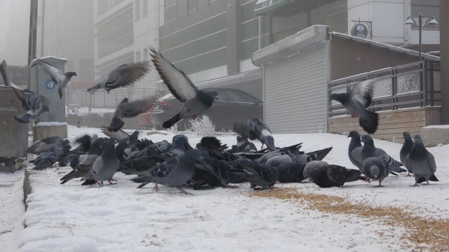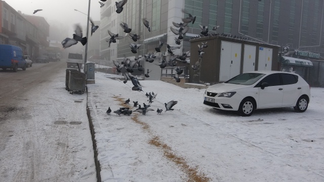 Kentin bir süredir karla kaplı olması ile soğuk yüzünden yiyecek bulmakta güçlük çeken ve donma tehlikesi geçiren güvercinlerin imdadına ise esnaf yetişiyor. Soğuk yüzünden çeşmelerin buz tuttuğu, ağaçların kırağı ile kaplandığı, doğanın ise tamamen beyaza büründüğü kentte birçok esnaf, güvercinleri her sabah kilolarca buğday ve arpayla besliyor.