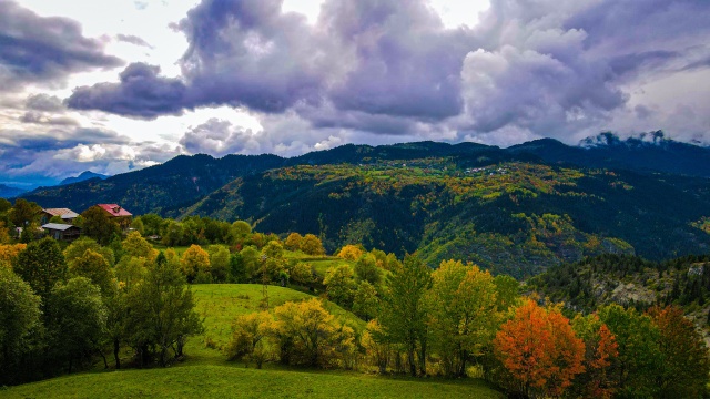 Artvin’in Sakin Şehir (Cittaslow) ünvanlı Şavşat ilçesinde Sonbaharın gelişi ile renk cümbüşü başladı. İlçede yeşilin yanı sıra sarı, turuncu ve kırmızının tonlarını sergileyen ağaçlar ve yöreye uygun ahşap evler görenleri kendisine hayran bırakıyor.
