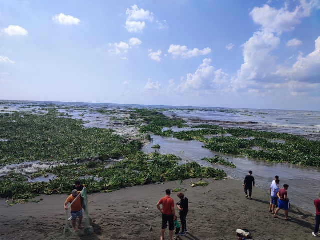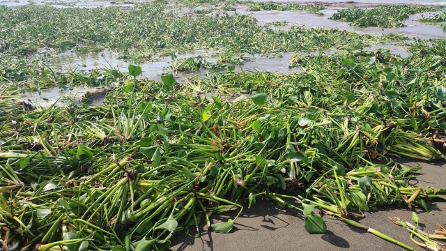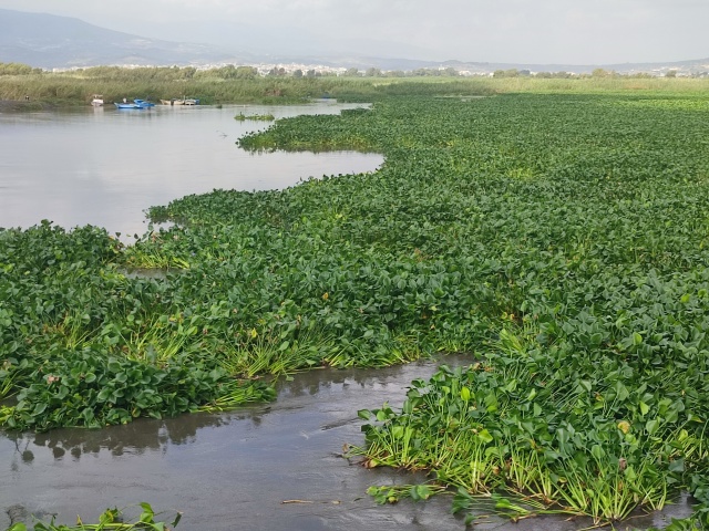 Hatay'ın inci gerdanı olarak bilinen Asi Nehri'nin bazı kısımlarını kaplayan 'su canavarı' olarak bilinen su sümbülleri, bugün yaşanan sağanak yağış sonrası nehrin denize döküldüğü bölgeyi istila etti.
