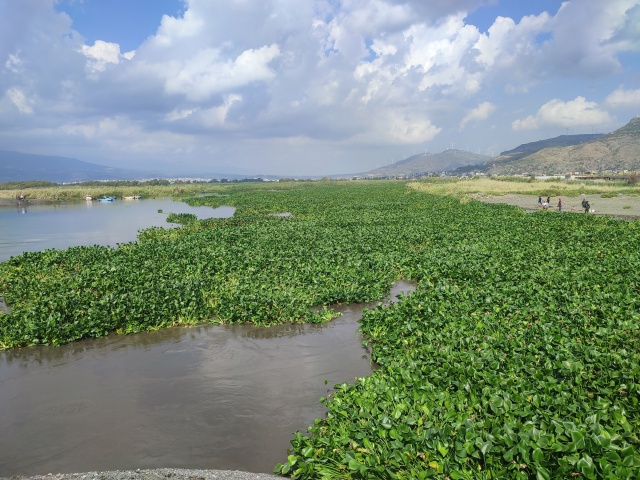 Lübnan'da doğan ve Suriye'den geçerek Hatay'da Akdeniz'e dökülen Asi Nehri'nin su sümbülleri, şiddetli yağışların ardından sürüklendi. Nehrin denizle buluştuğu bölgeyi su sümbülleri kapladı.