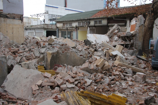 Saathane Meydanı’nda tarihin önündeki yapılar yıkılarak kaldırılıyor.