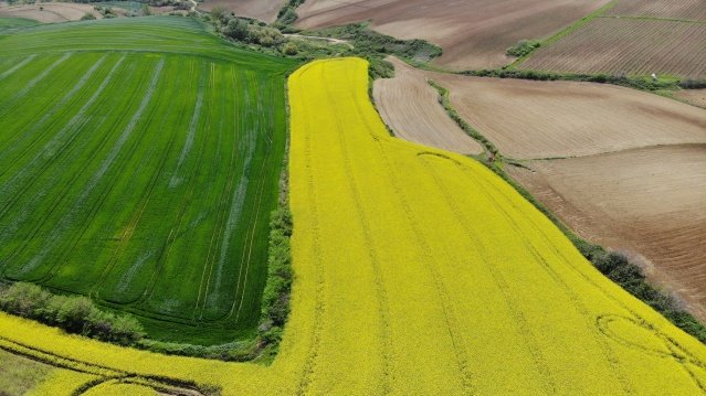 Yağ bitkisi olarak kullanılan kanolanın çiçek açmasıyla Tekirdağ ve çevresinde güzel görüntüleri de beraberinde getirdi. Tekirdağ'daki sarı ile yeşilin savaşı drone ile havadan görüntülendi.