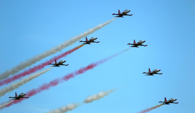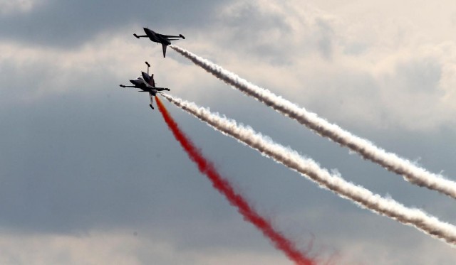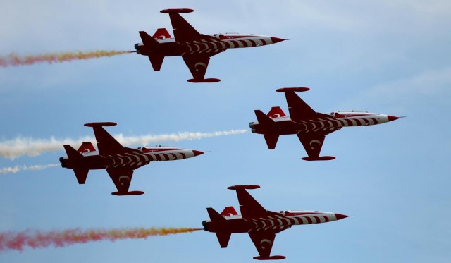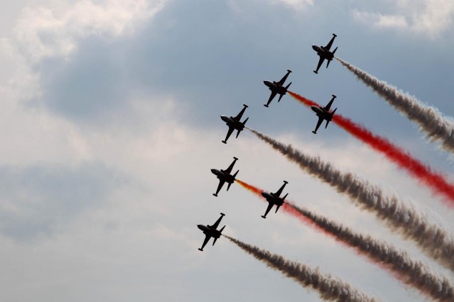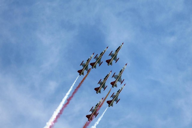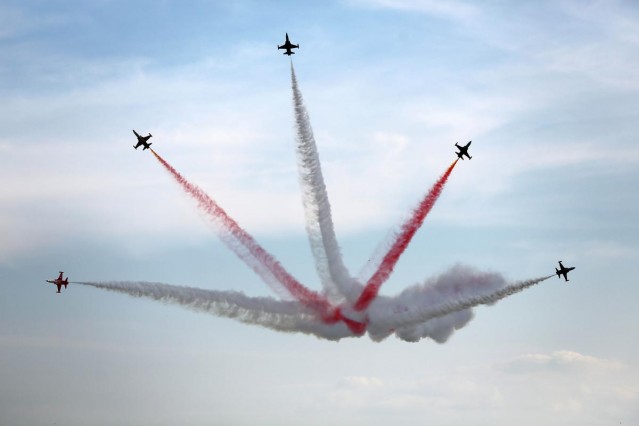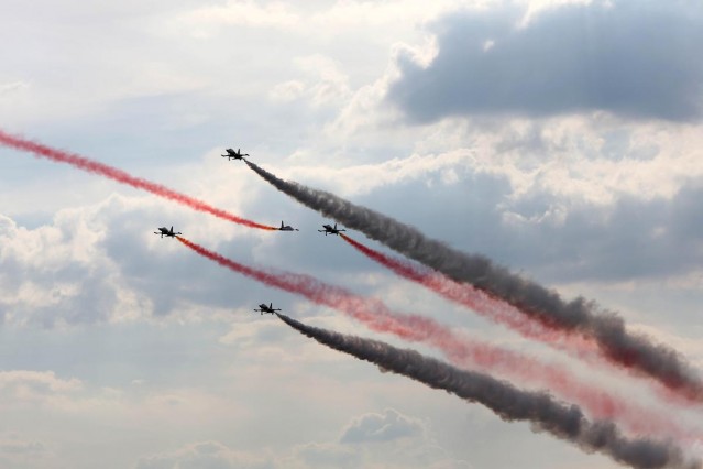 Türk Hava Kuvvetleri'nin akrobasi timi Türk Yıldızları, Polonya'nın Poznan kentinde düzenlenen havacılık festivali kapsamında gösteri uçuşu yaptı.