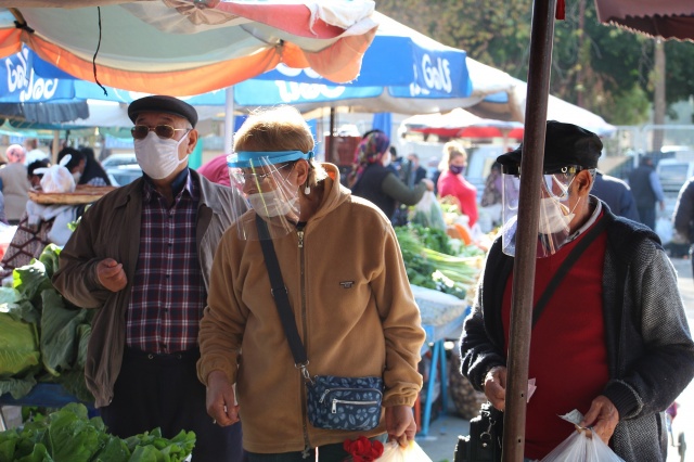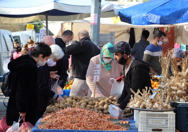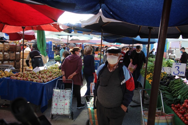 Pazara korkarak geldiğini dile getiren Nurcan Deniz,” mecbur alışveriş yapacağız. Pazar kalabalık ve pahalı. Birazdan iznimiz bitecek, hemen eve döneceğim. Keşke herkes bizim gibi çift maske taksa. Kimse bunu önemsemiyor, “Bize gelmez” zannediyor ama herkese gelebilir” dedi. Eşiyle pazara gelen Ayşe Gürten, 13.00’da kadar izinlerinin olduğunu domates alıp hemen eve döneceklerini kaydetti.