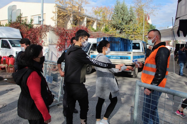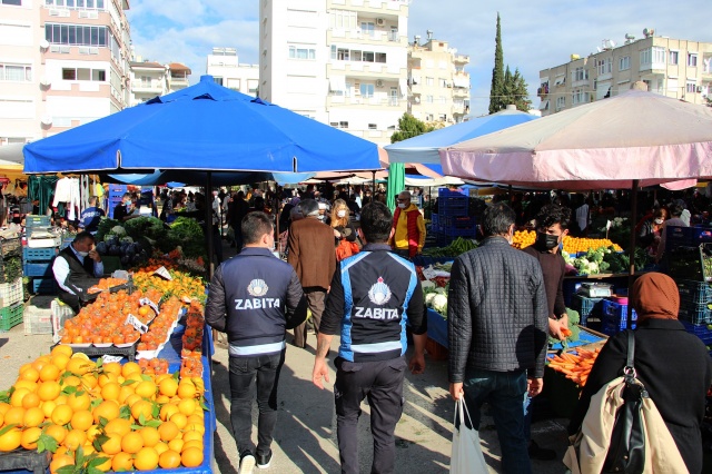 Yoğunluğun durumuna göre belirli aralıklarla pazara müşteri alımı durduruldu. Önlemlerin üst safhaya çıkarıldığı pazarda bir ekipte, alışveriş yoğunluğunun olduğu bölgelerde maske ve sosyal mesafe denetimi yaptı. Ekipler, kısa süre içinde maskesini hatalı takan onlarca esnafı uyardı. Herkesin maske taktığı pazarda, hatalı takanlar ise zabıtaca uyarıldı.