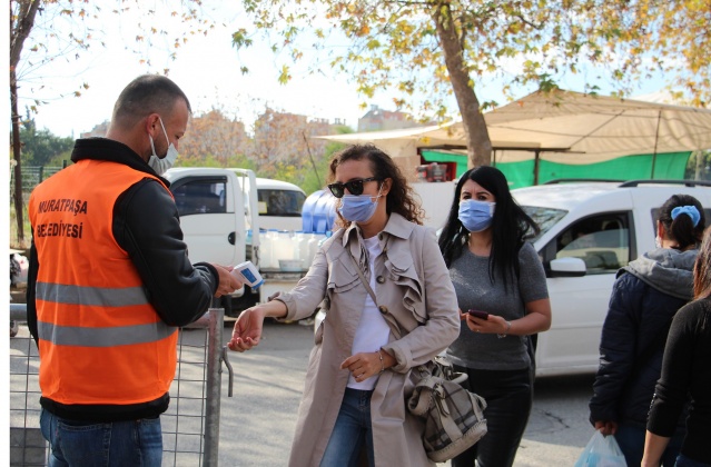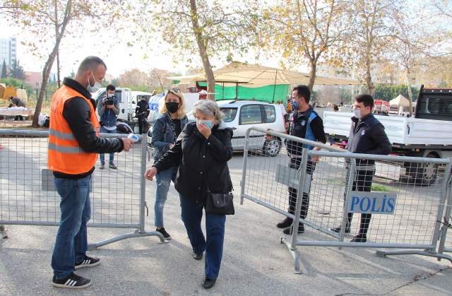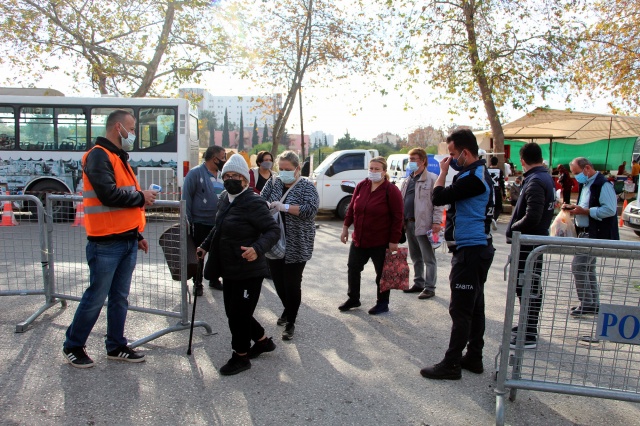 Sağlık Bakanı Fahrettin Koca’nın korona virüs vakalarının artmaya devam ettiğini açıkladığı turizm kenti Antalya’da bazı alanlarda vatandaş yoğunluğu devam ediyor. Hastanelerde servis doluluk oranı yüzde 46.7, yoğun bakım doluluk oranı yüzde 68.5, solunum cihazı doluluk oranı yüzde 51.4’e ulaştığı kentte denetimler ve ek tedbirlerde alınmaya devam ediyor. Daha önce kalabalık yerlere sınırlama, banklara oturmanın kaldırıldığı Antalya’da, yoğun alanlardan semt pazarlarında tedbirler sıklaştırıldı. Meltem Mahallesindeki semt pazarının etrafı demir bariyerlerle kapatılırken, 4 noktadan kontrollü giriş verildi. Muratpaşa Belediyesi Zabıta ekipleri girişlerde hem maske kontrolü hem de ateş ölçümü yaptı.