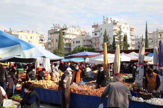 Korona virüs vakalarının artmaya devam ettiği turizm kenti Antalya’da semt pazarlarındaki yoğunlukta devam ediyor. 10.00-13.00 saatleri arasında sokağa çıkma izni bulunan 65 yaş ve üzeri vatandaşların pazarda yoğunluk oluşturduğu görüldü.