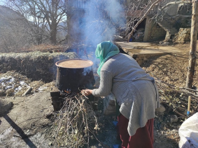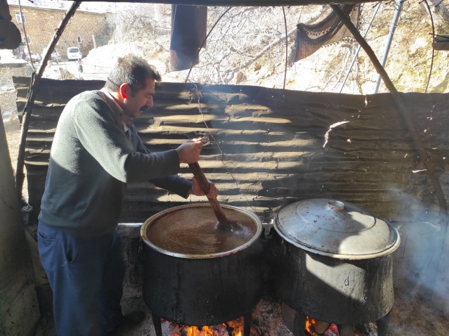 Batman'ın Sason ilçesine bağlı Topluca köyünde ikamet eden Çelik ailesi, yaz kış demeden yıl boyunca cevizli sucuk yaparak geçimlerini sağlıyor.