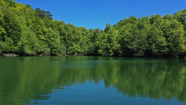 Sonbaharda sarının bütün tonlarını barındırmasıyla fotoğraf tutkunlarının gözdesi olan Yedigöller’de, Mayıs ayı itibariyle ağaçlar yeniden yeşillendi. İçerisinde bulunan ağaçların yeşilin bütün tonlarını sergilediği Yedigöller Milli Parkı’nın havadan görüntüsü eşsiz manzarayı da ortaya çıkarttı.