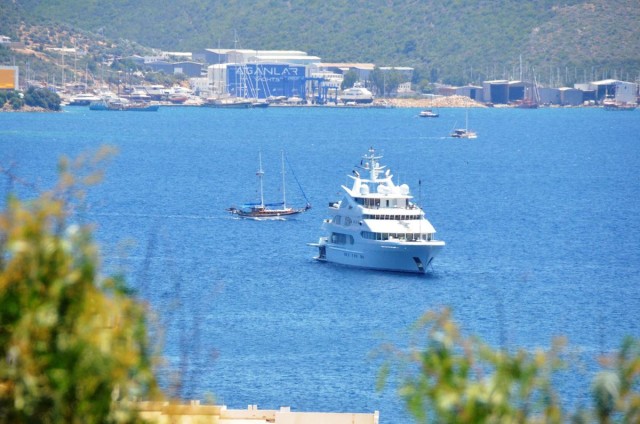 Bodrum Kalesi açıklarına demirleyen yaklaşık 250 milyon dolar değerindeki yat, 77 metre uzunluğunda ve 13 metre genişliğinde.