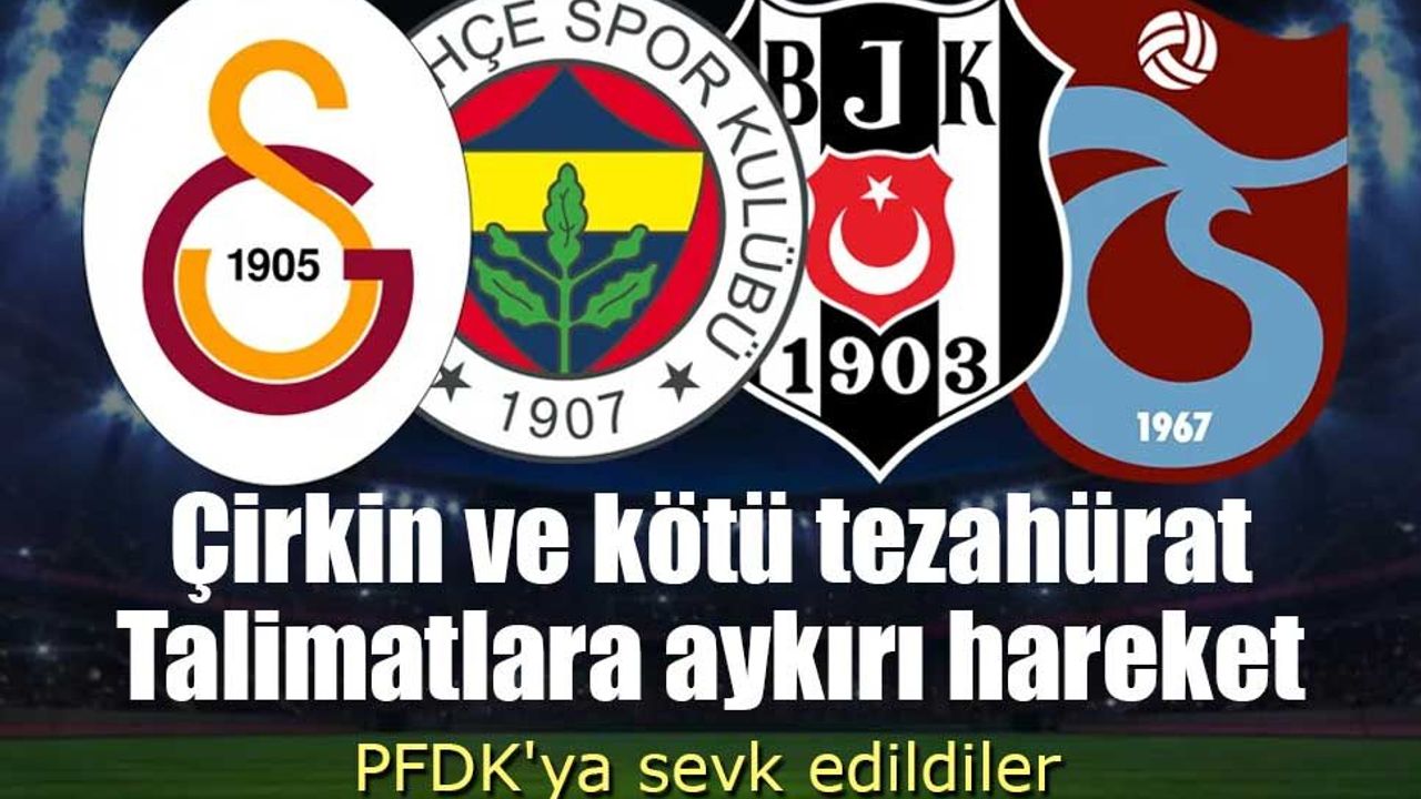 "Galatasaray Kulübü'nün 03.03.2026 tarihinde oynanan Corendon Alanyaspor - Galatasaray Ziraat Türkiye Kupası müsabakasındaki 'Çirkin ve kötü tezahüratı' nedeniyle Futbol Disiplin Talimatı'nın 53. maddesi uyarınca PFDK'ya sevkine karar verilmiştir.